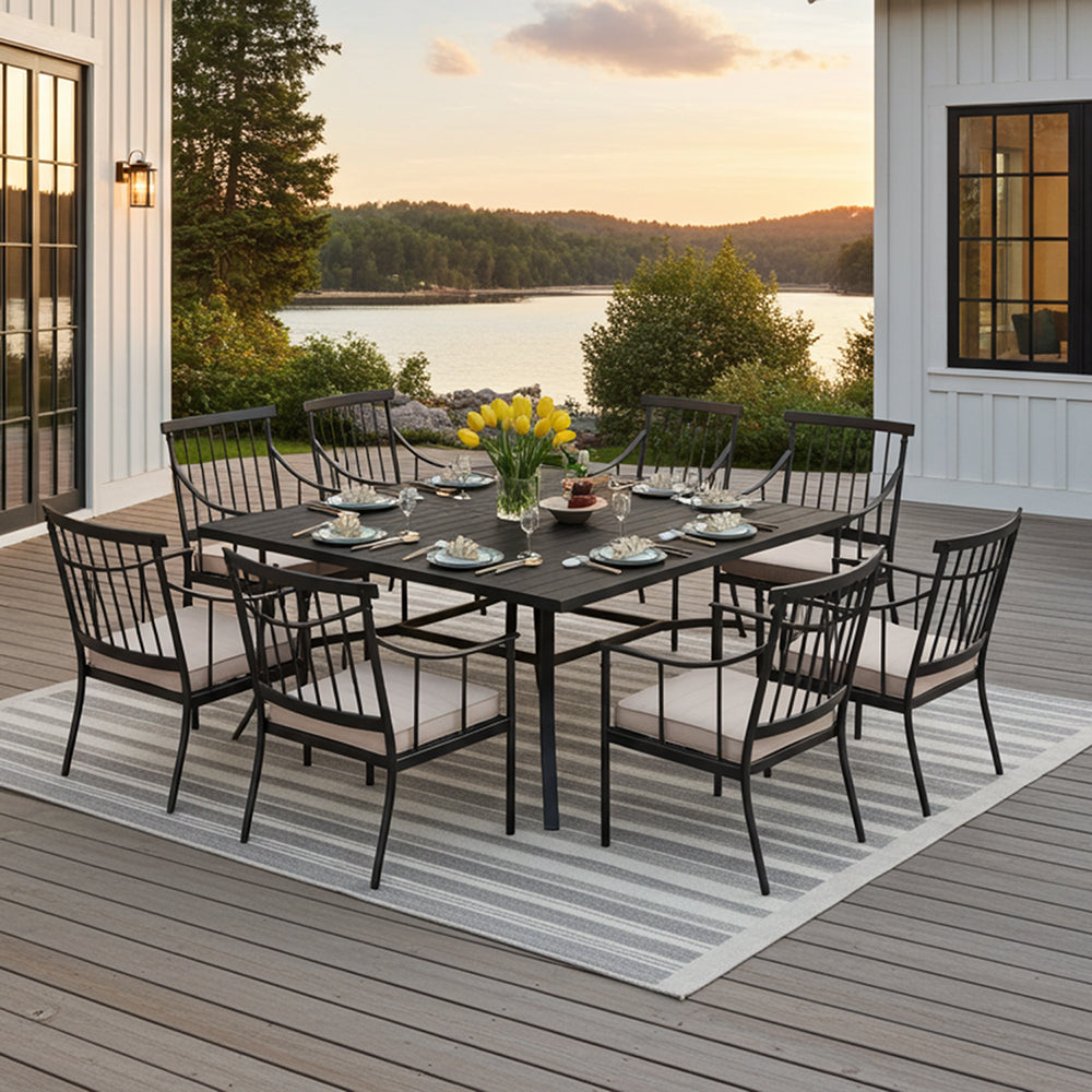 9-Pcs Patio Dining Set with 60" Square Table and Fashionable Steel Chairs