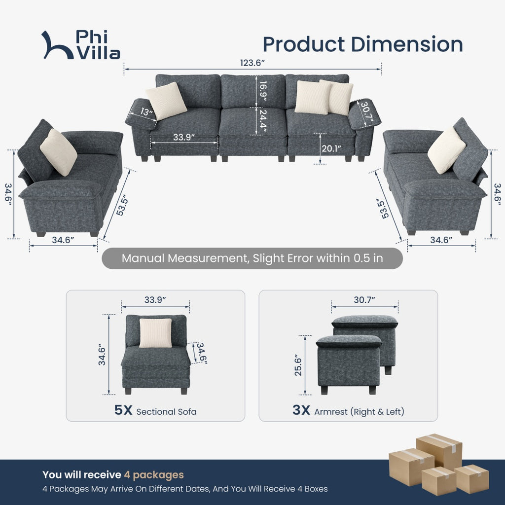 Living Room Sofa Chenille Cloud-like Couch Modular Sectional Large Set