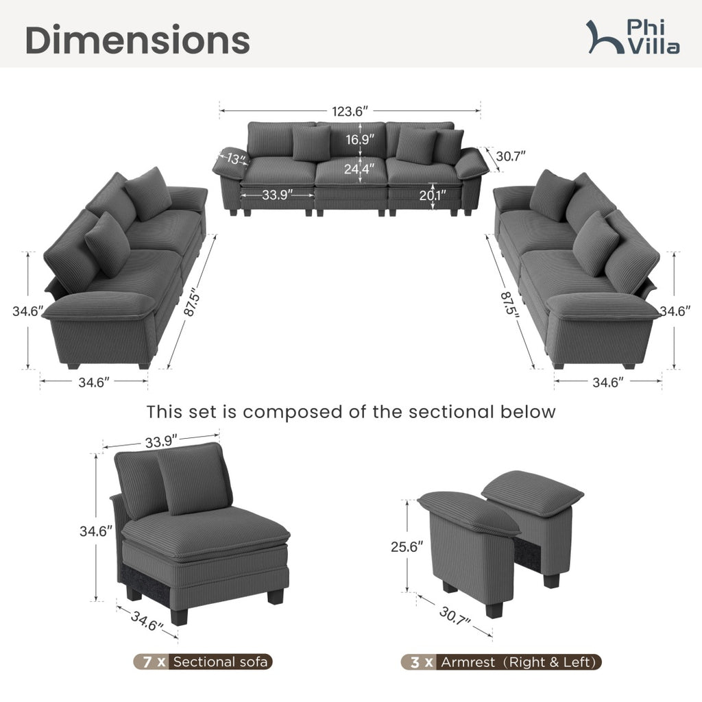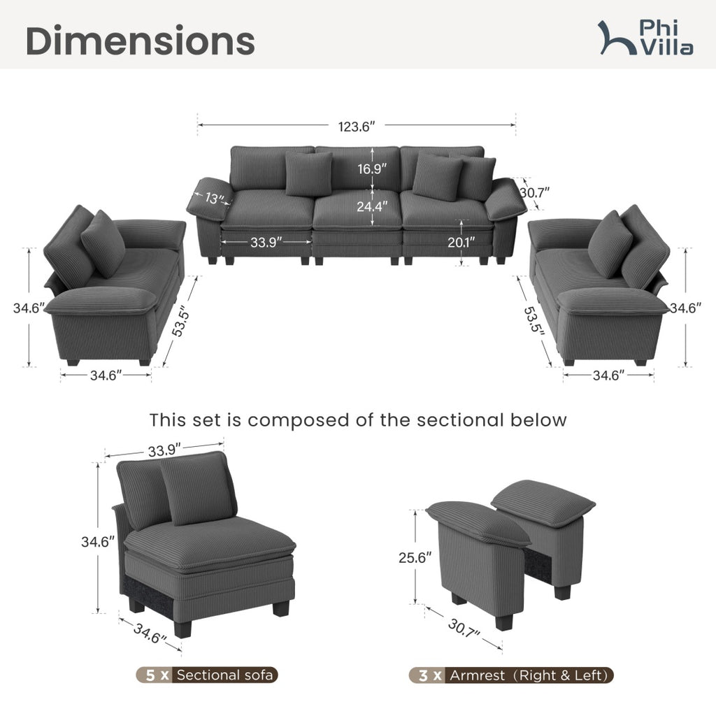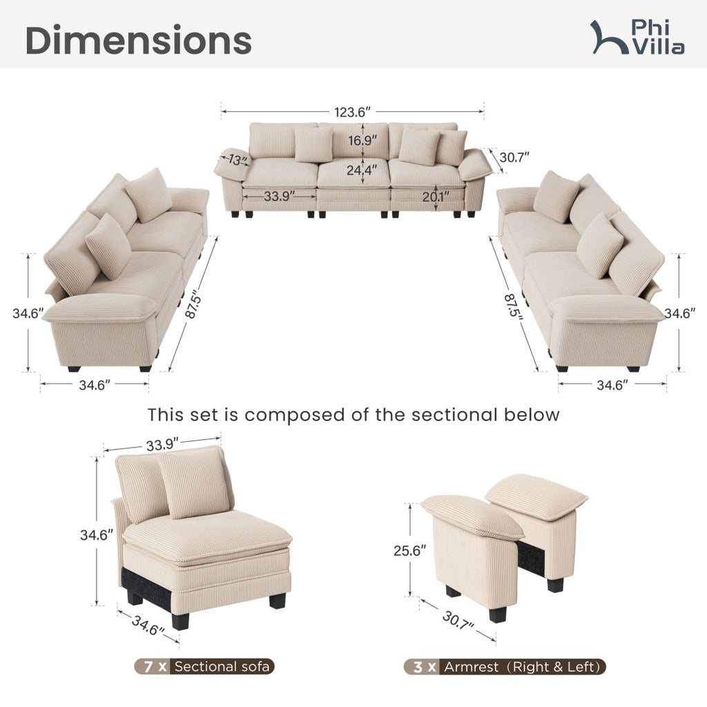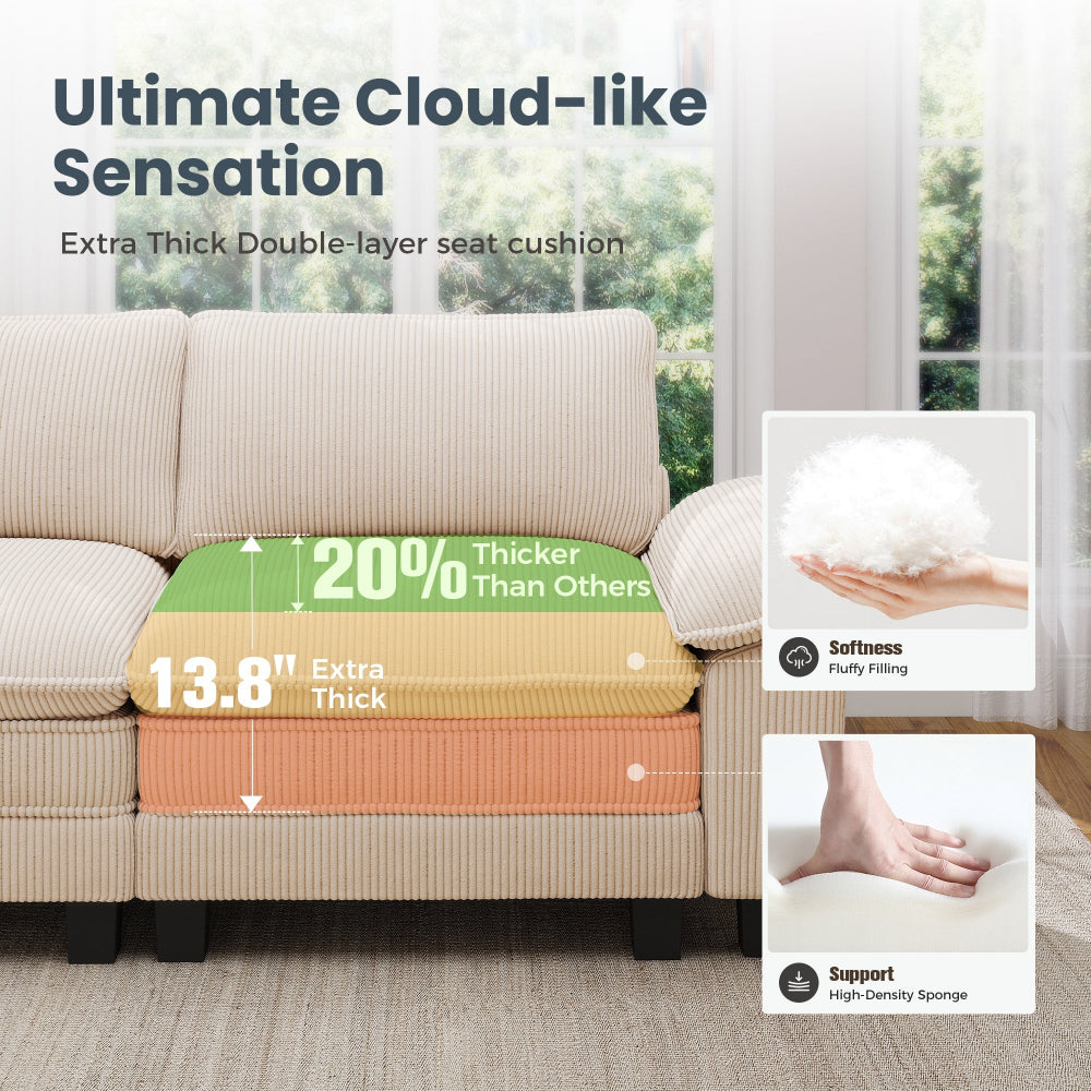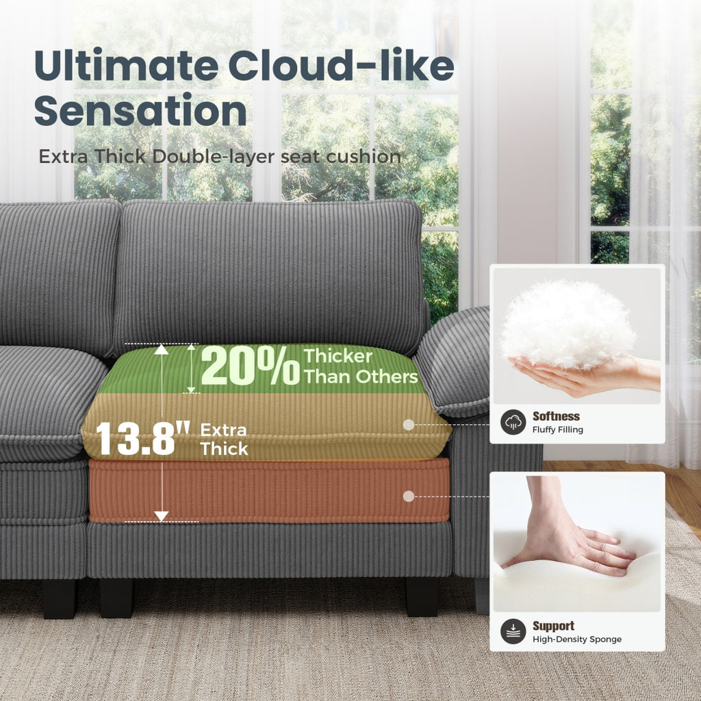 Living Room Sofa Corduroy Cloud-like Couch Modular Sectional Large Set