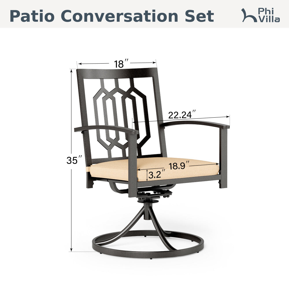 5-Piece Outdoor Dining Set 4 Cushioned Swivel Chairs and Larger Square Table PHI VILLA