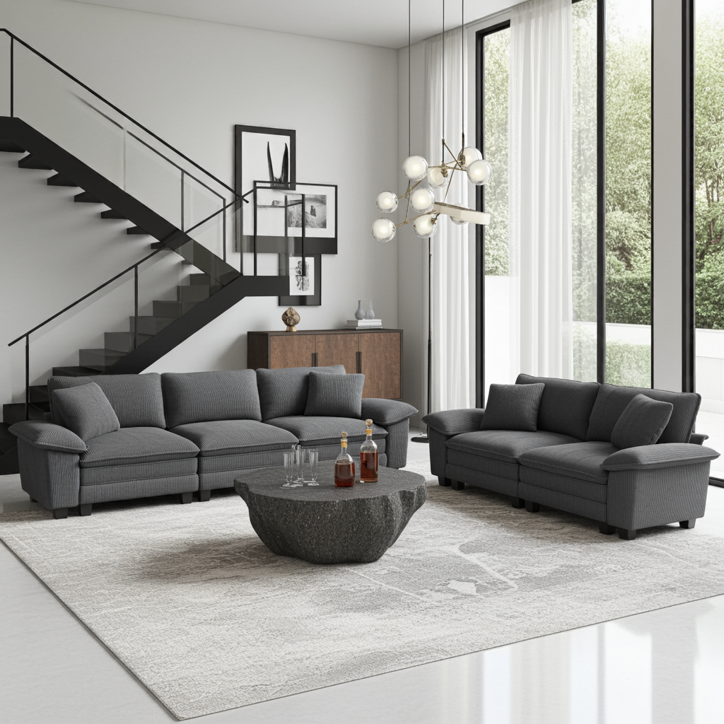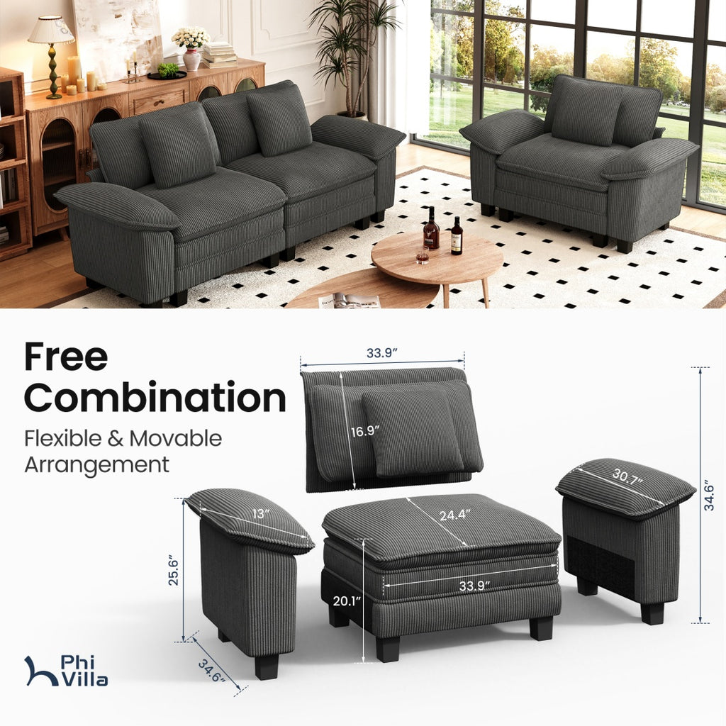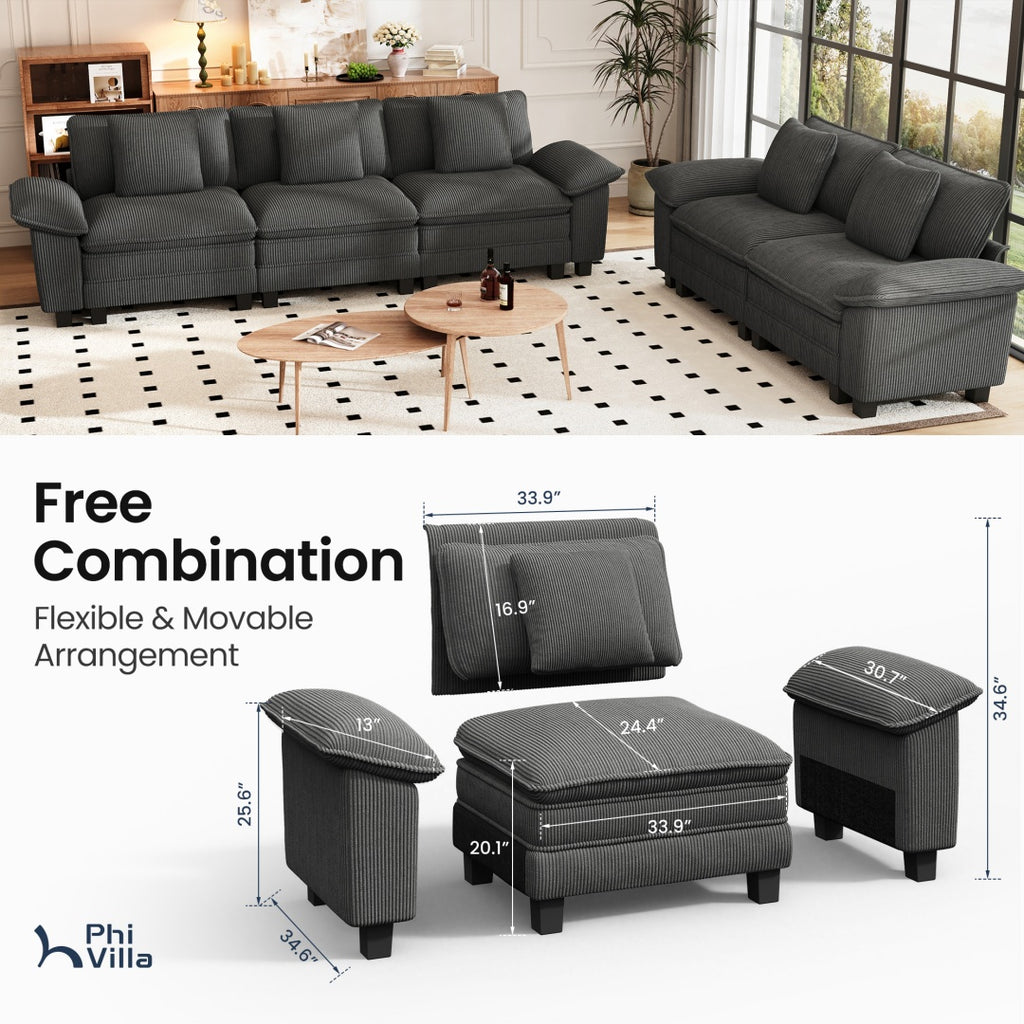 Cloud-like Living Room Sofa Couch Modular Sectional Corduroy Large Set