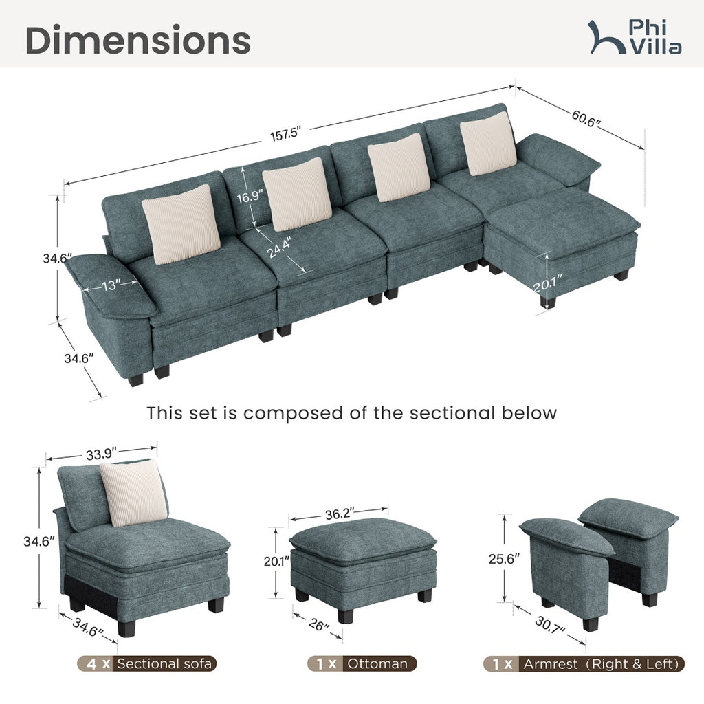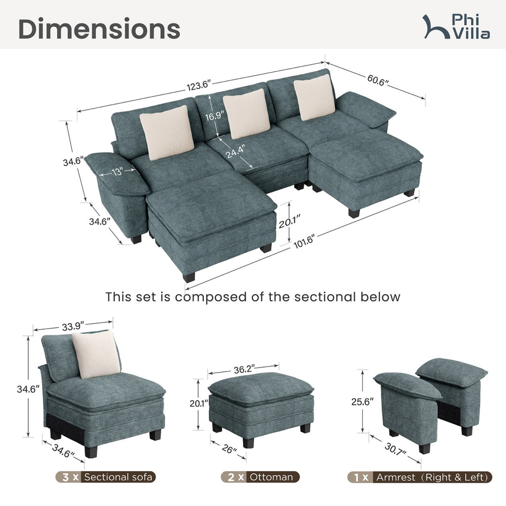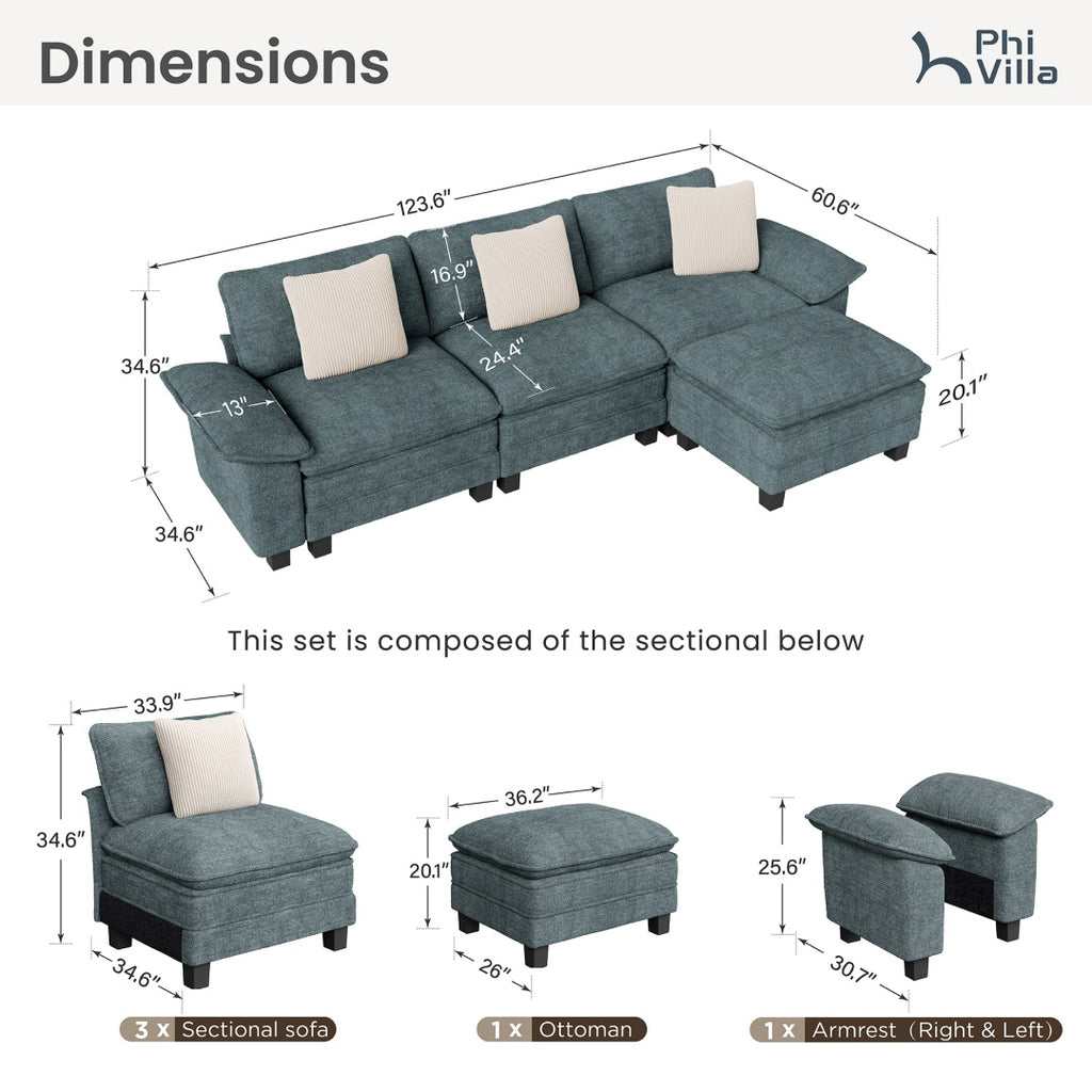 Living Room Modular Sectional Sofa Couch Cloud-like Chenille with Ottoman