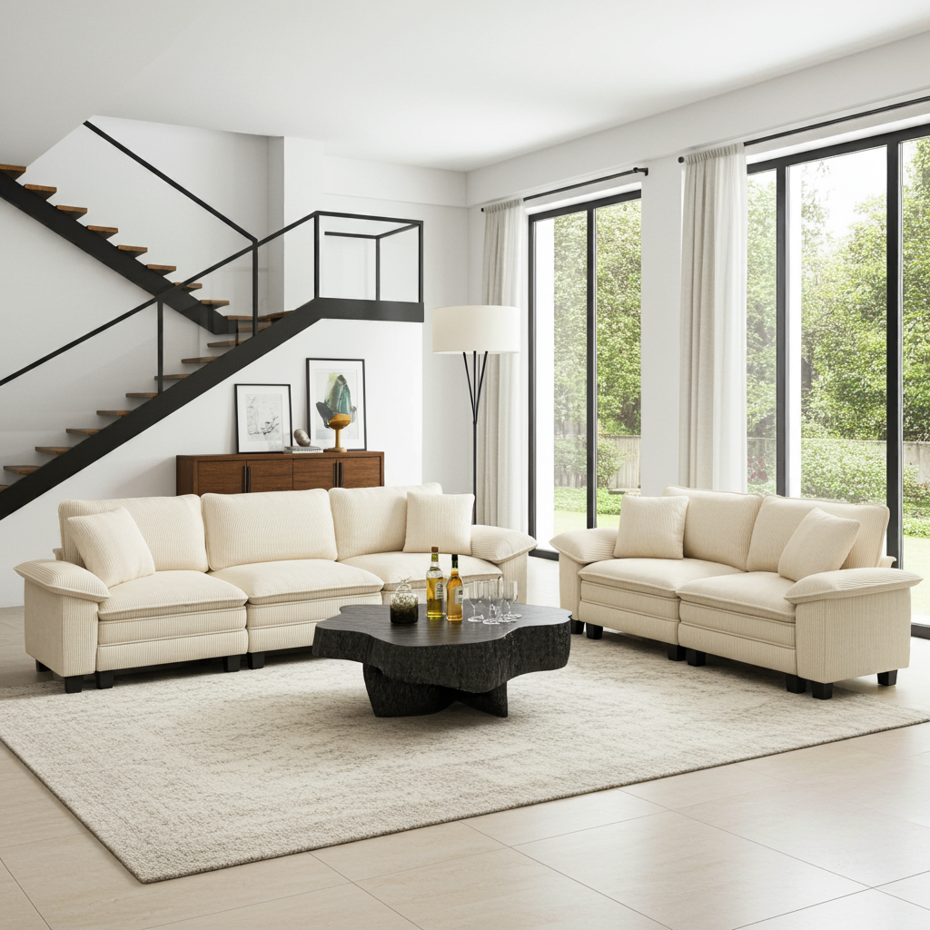 Cloud-like Living Room Sofa Couch Modular Sectional Corduroy Large Set