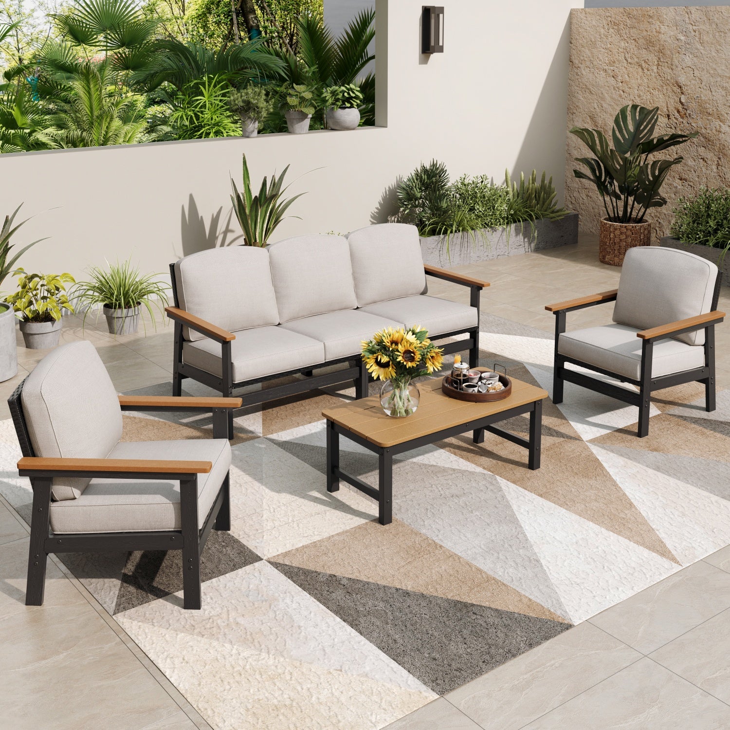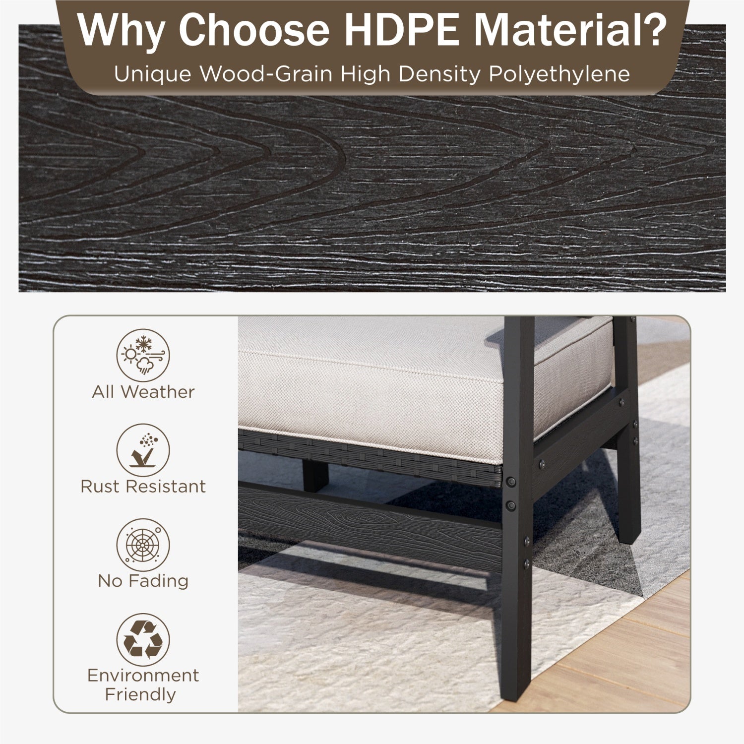 - Effortless Maintenance: Crafted from waterproof HDPE materials that won't rust, this sofa set requires no upkeep, allowing you to enjoy your outdoor space worry-free.
