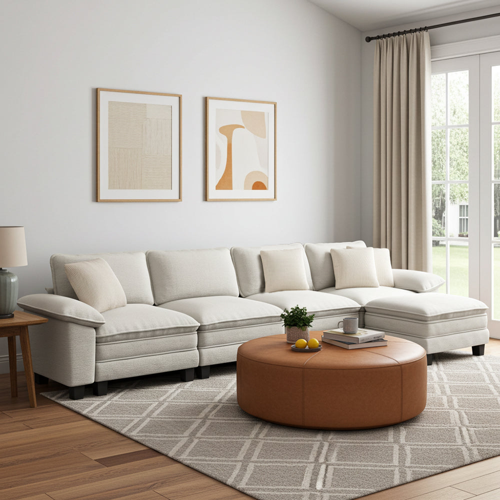 Chenille Living Room Sofa Couch Cloud-like Modular Sectional with Ottoman
