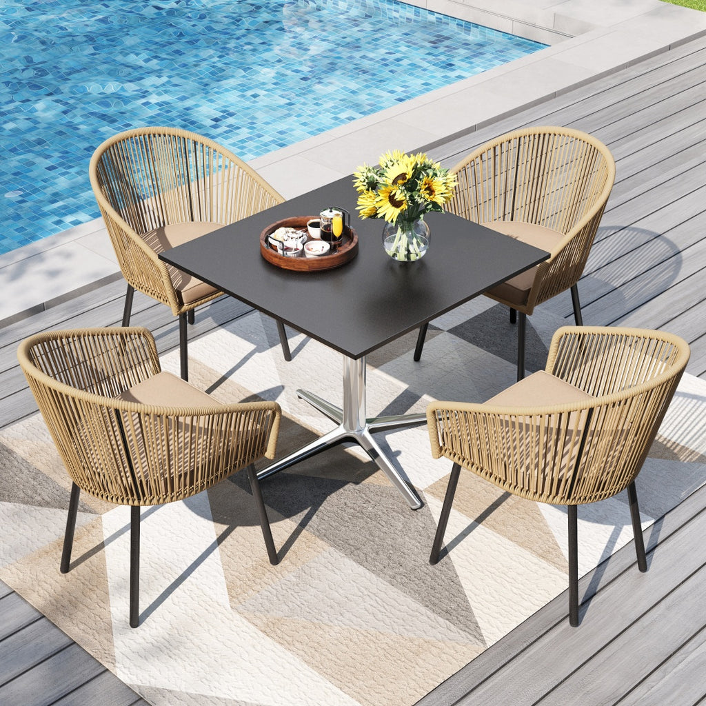 Catalina 4-Seater Dining Set Contemporary Rope Chairs & Sleek Bauhaus Table