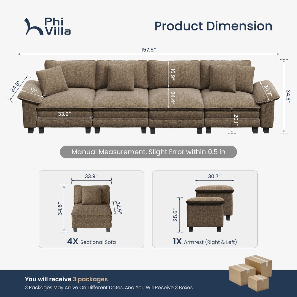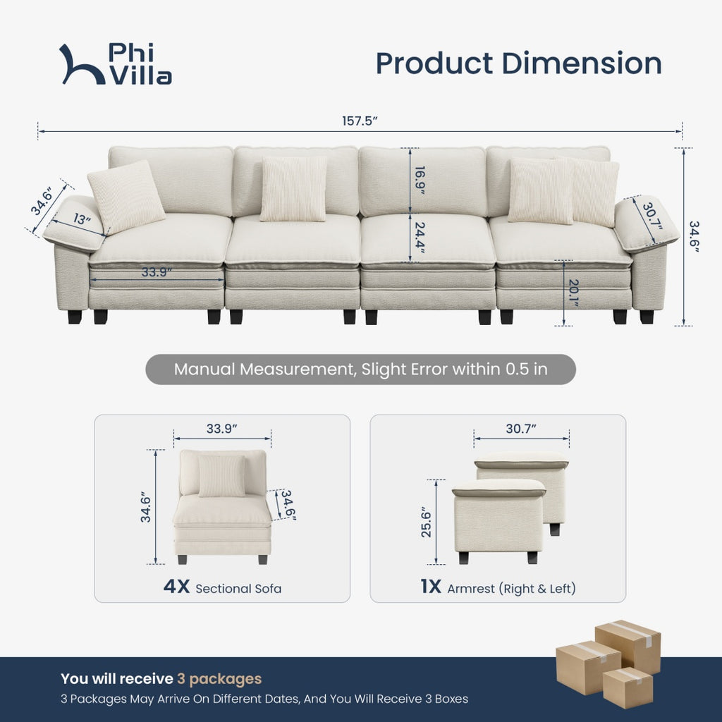 Cloud-like Living Room Modular Sectional Sofa Couch Chenille