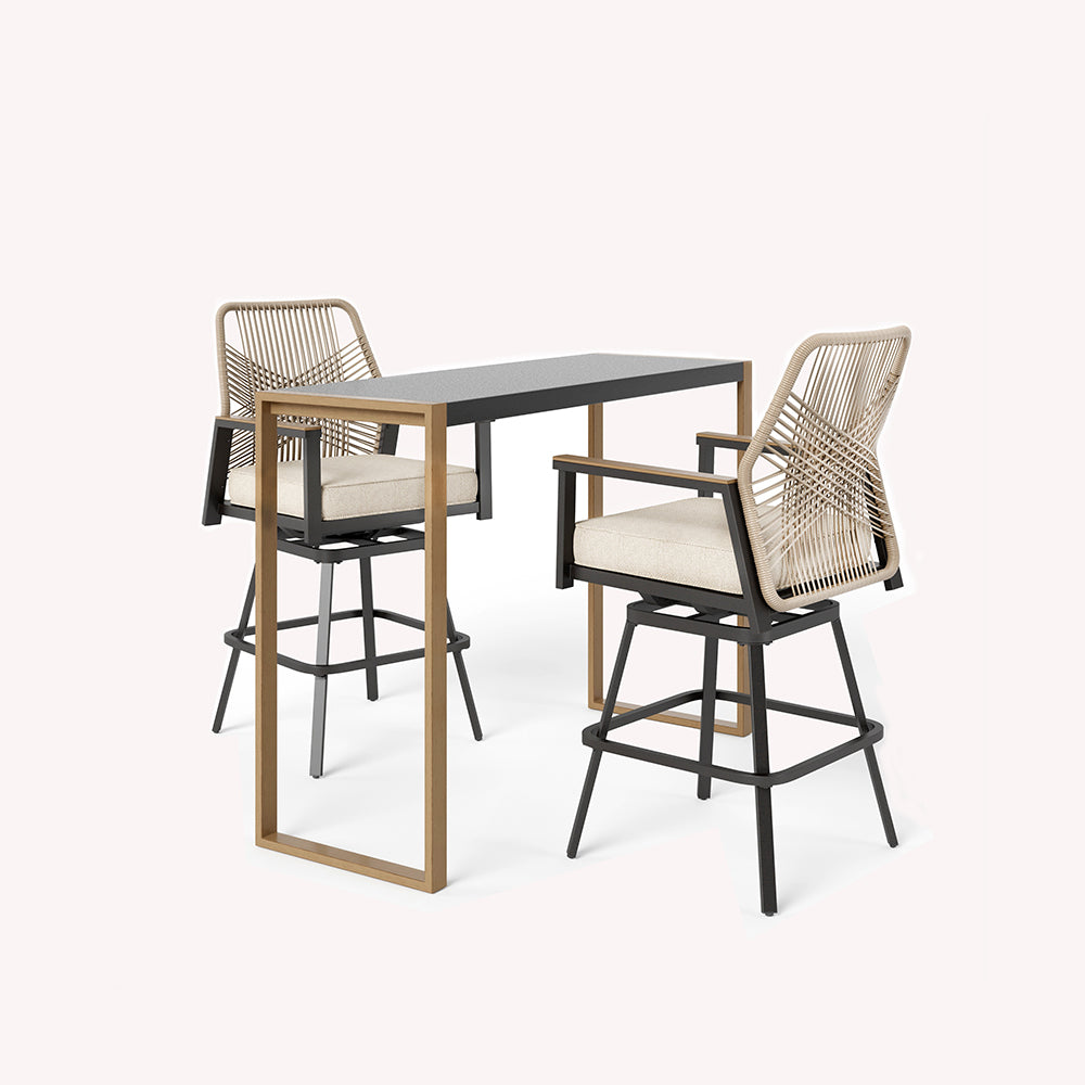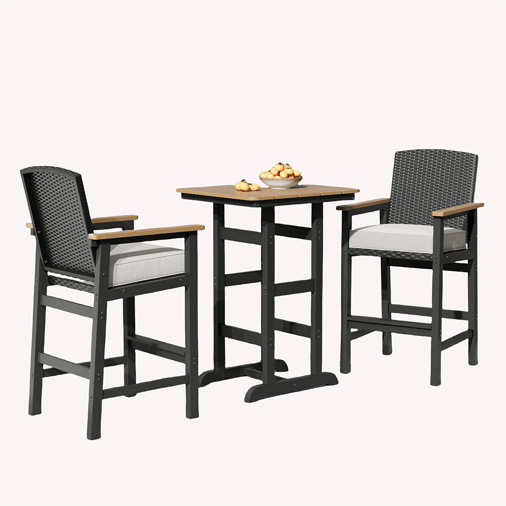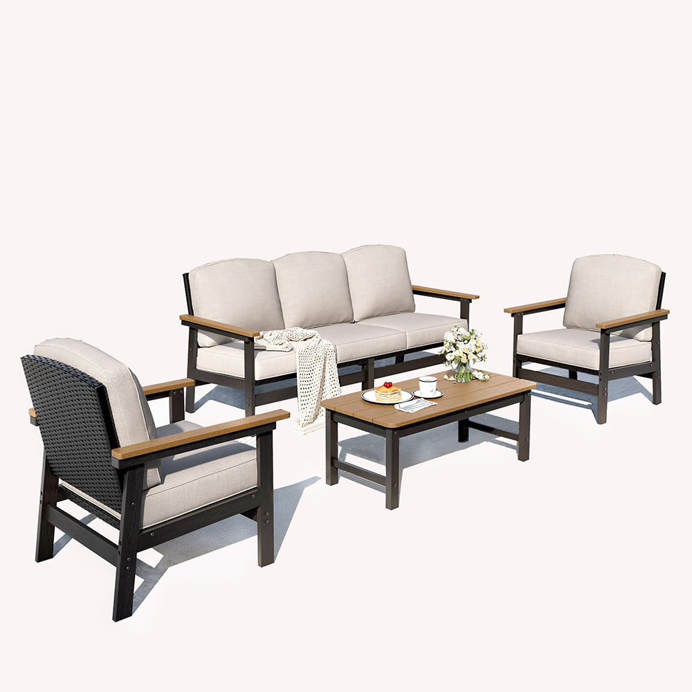 The Tranquil Collection brings beauty and elegance to outdoor spaces. It features stylish sofas, dining sets, and high bar stools. With wood-grain polywood frames and realistic wood finishes, it blends elegance and comfort for serene outdoor relaxation.