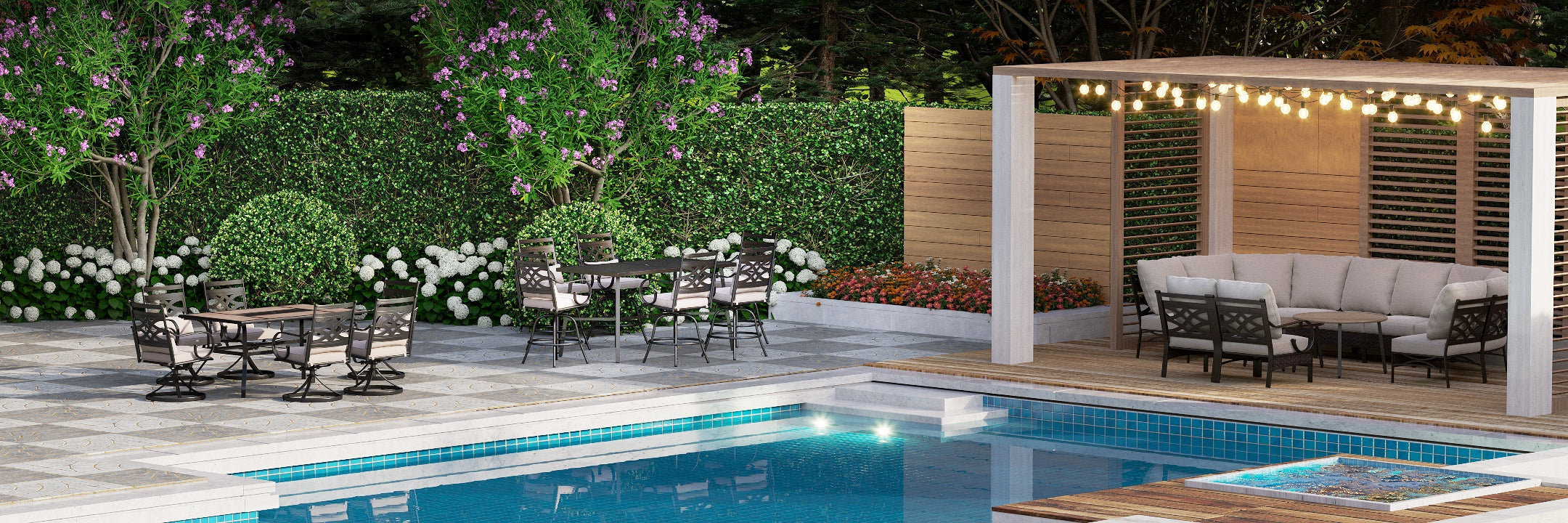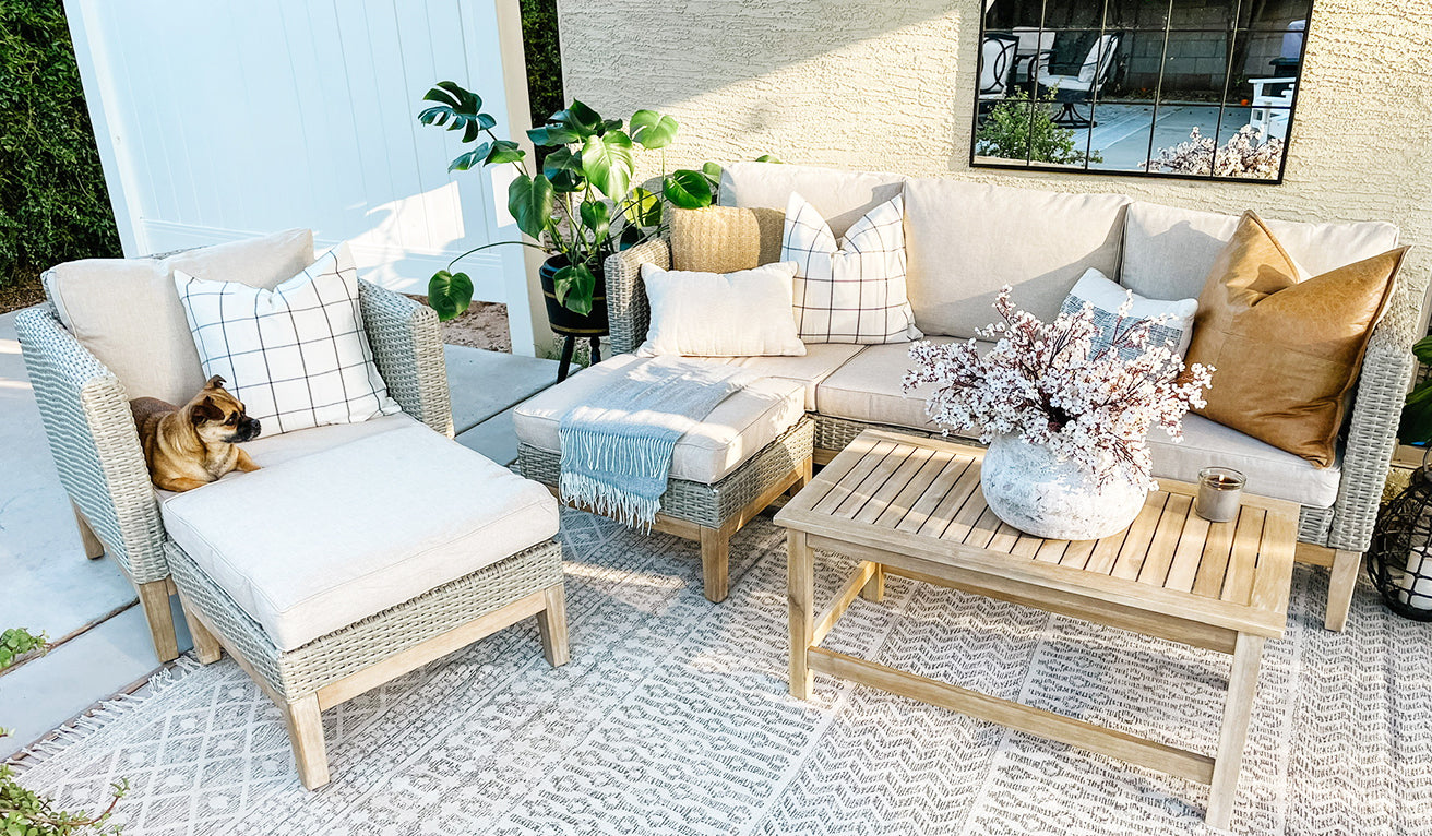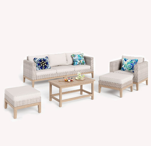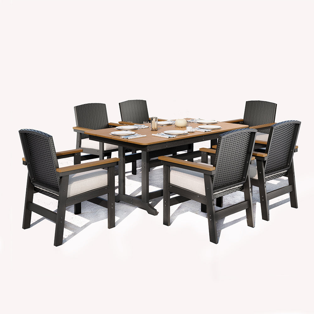 The Tranquil Collection brings beauty and elegance to outdoor spaces. It features stylish sofas, dining sets, and high bar stools. With wood-grain polywood frames and realistic wood finishes, it blends elegance and comfort for serene outdoor relaxation.