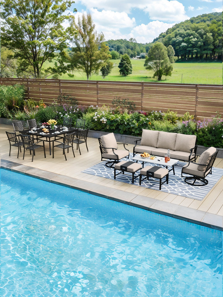 Graceful and fluid, the Wave Collection features an undulating wave design that creates smooth lines, evoking a light and dynamic visual impression. Ideal for any outdoor setting, this collection adds a refreshing sense of movement and style.