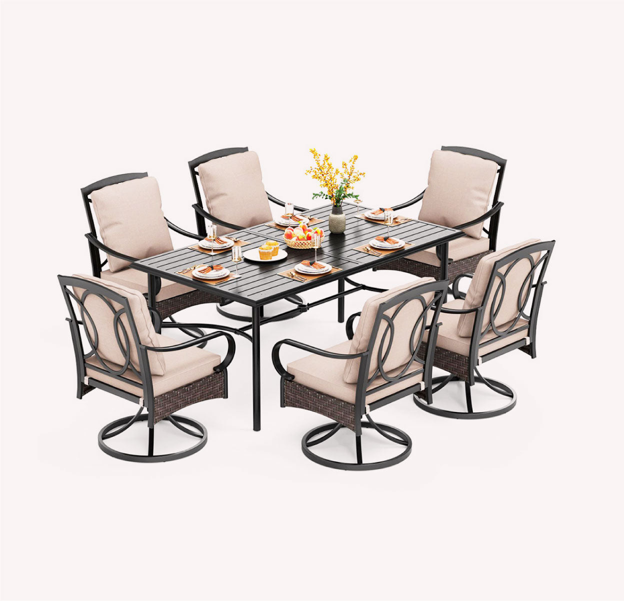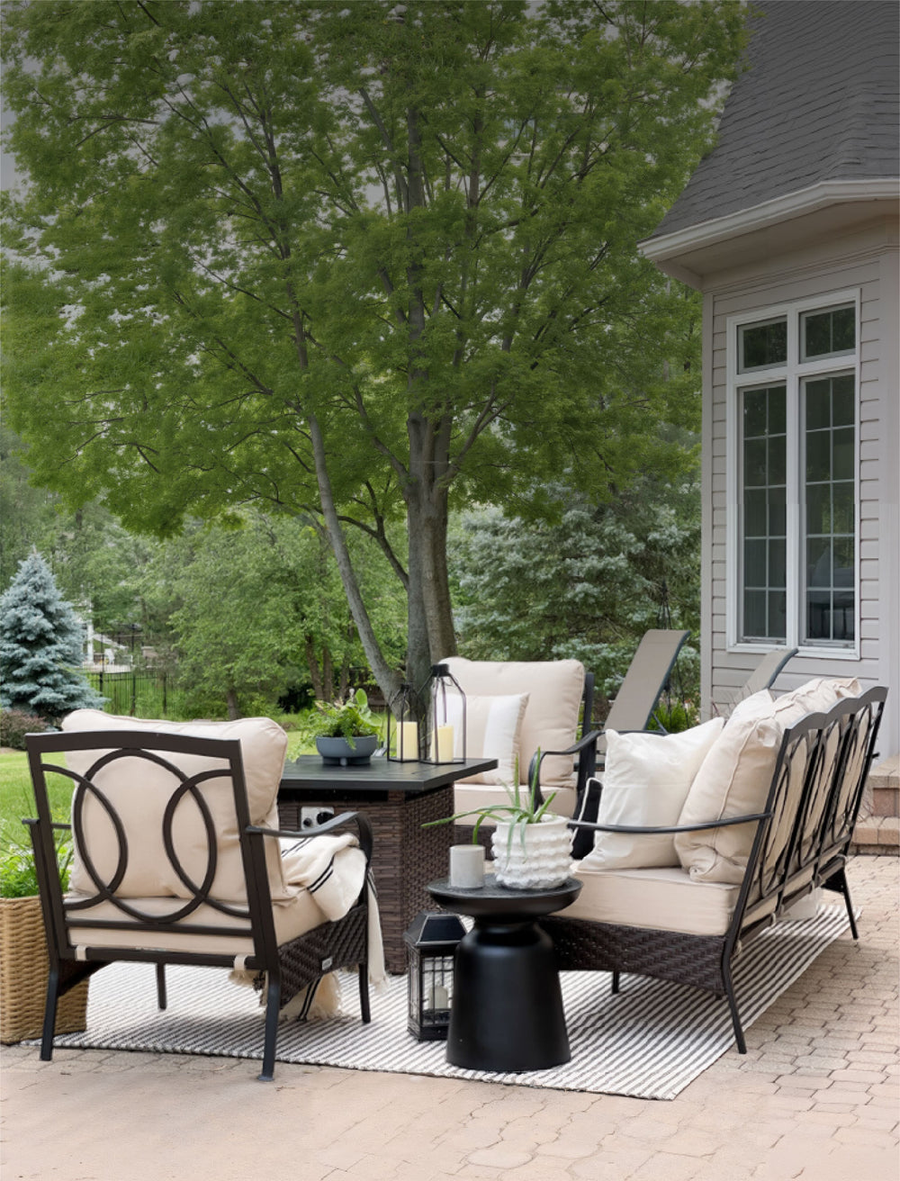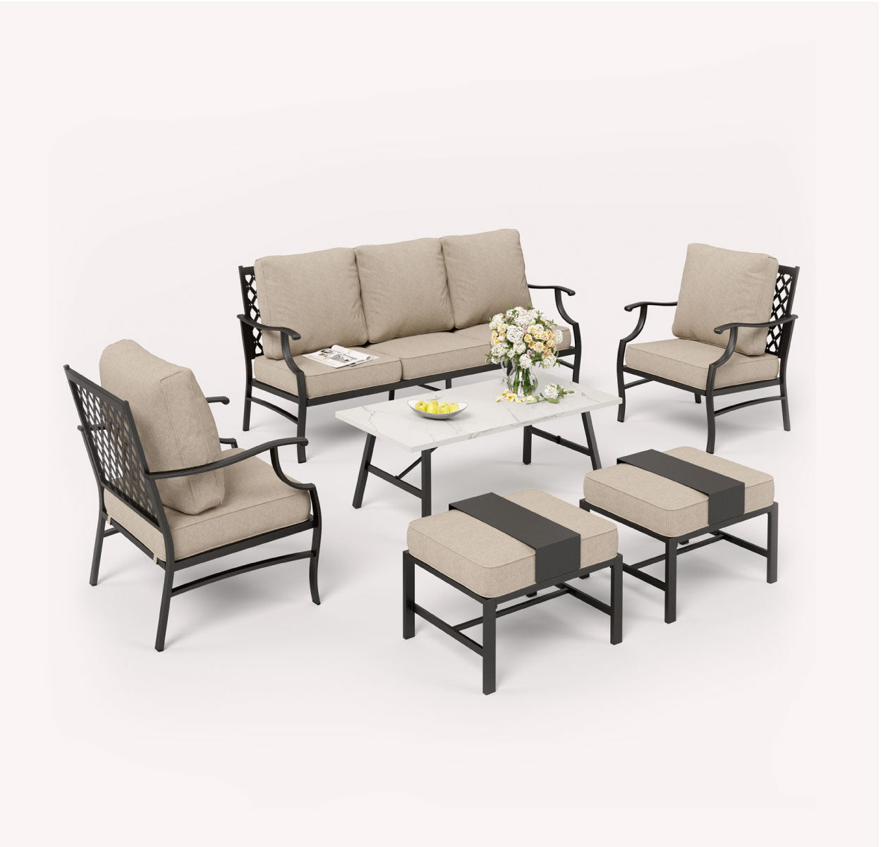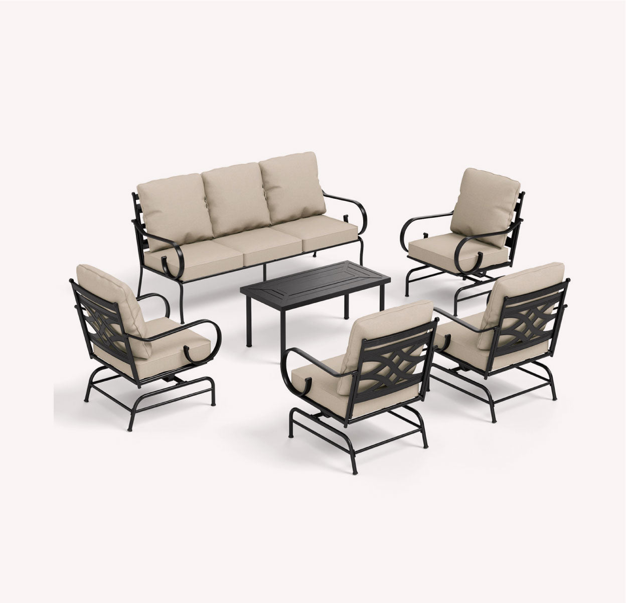 Showcasing an intertwined design with curved armrests. The Vines Collection evokes the tranquil elegance of vines in your backyard, providing a serene atmosphere for outdoor seating.