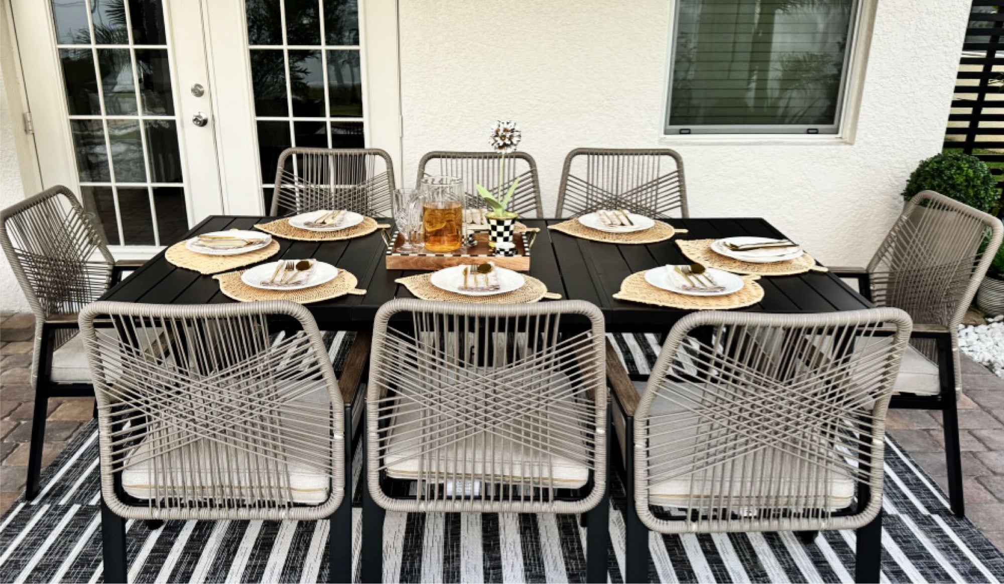 With a stunning woven chair back that resembles a shimmering mirage. This collection reflects the beauty of garden blooms. Each piece seamlessly integrates