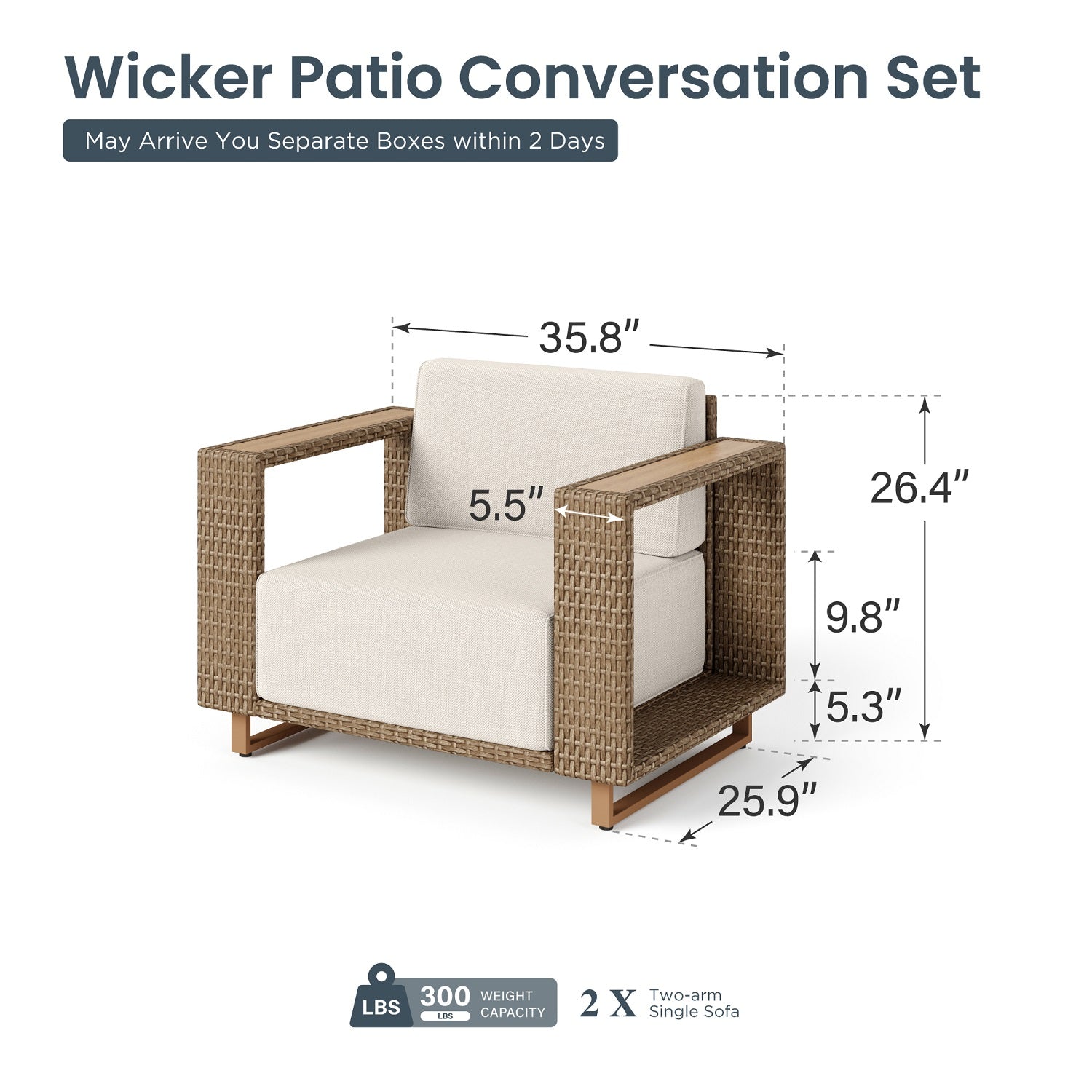 - Contemporary Comfort: Enjoy wider 5.5’’ armrests made of durable rattan and wood plastic, perfect for modern outdoor spaces.