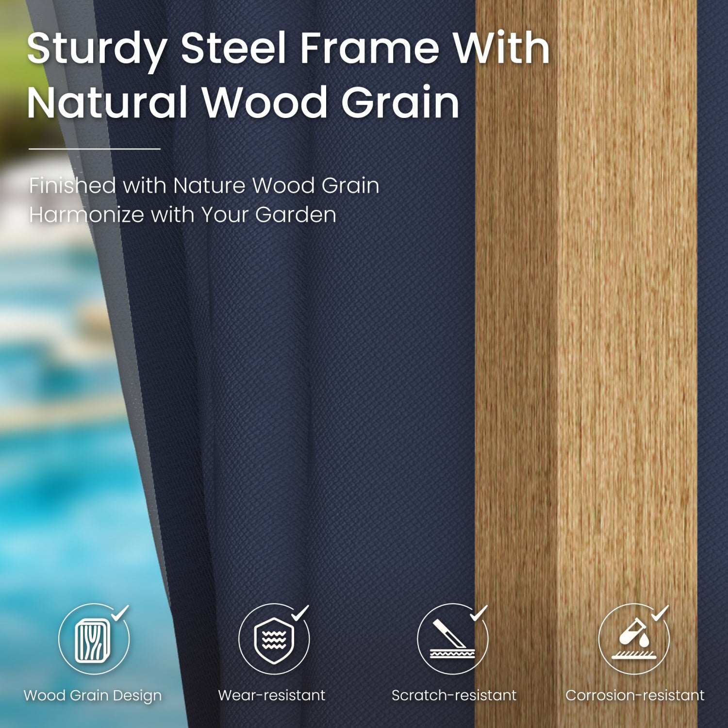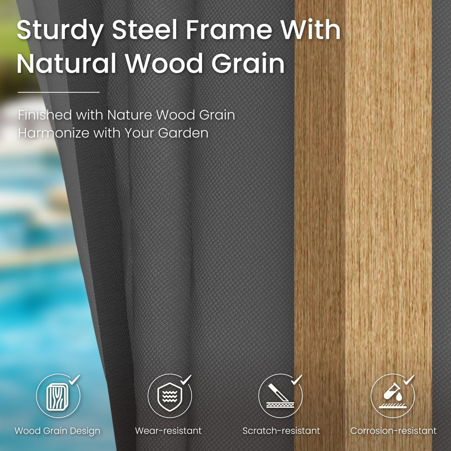 - Sturdy Steel Frame with Natural Wood Grain: This gazebo features a durable steel frame finished with natural wood grain, harmonizing beautifully with your garden's aesthetic.