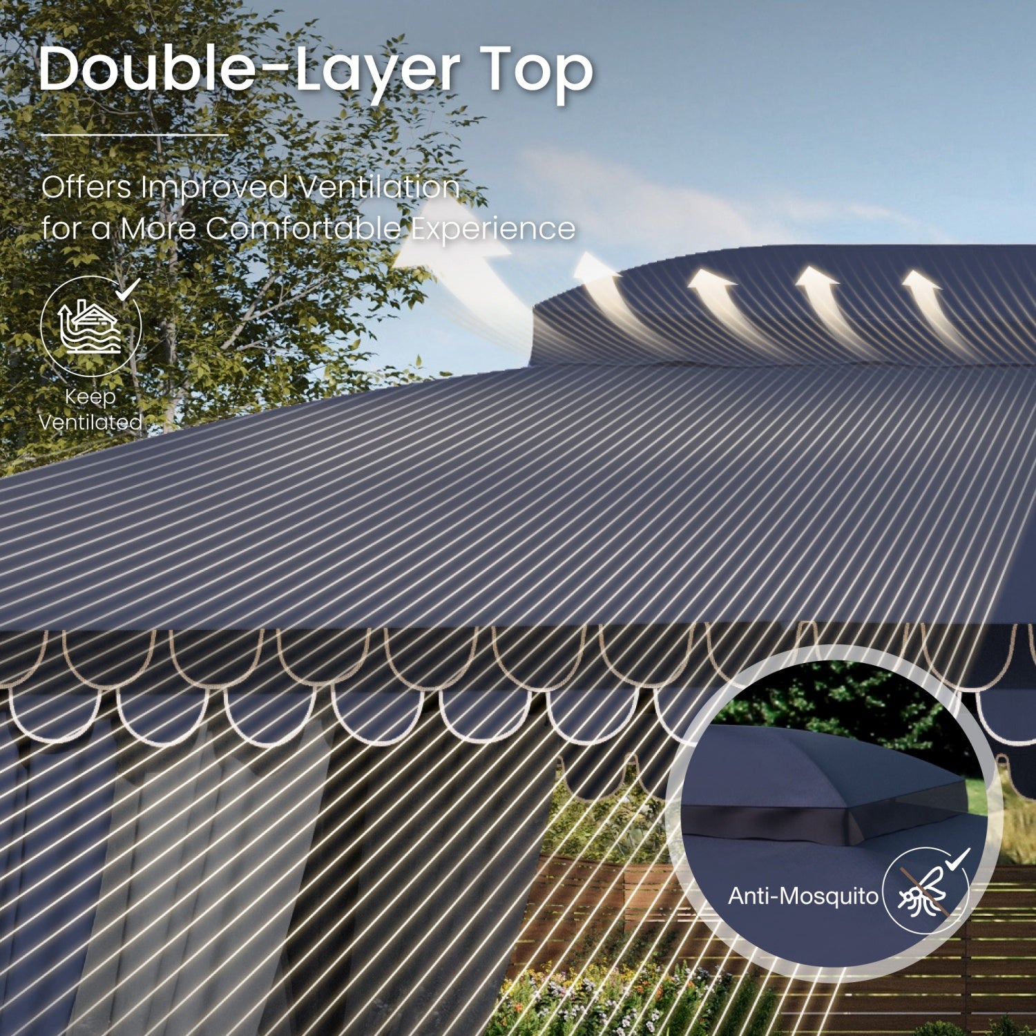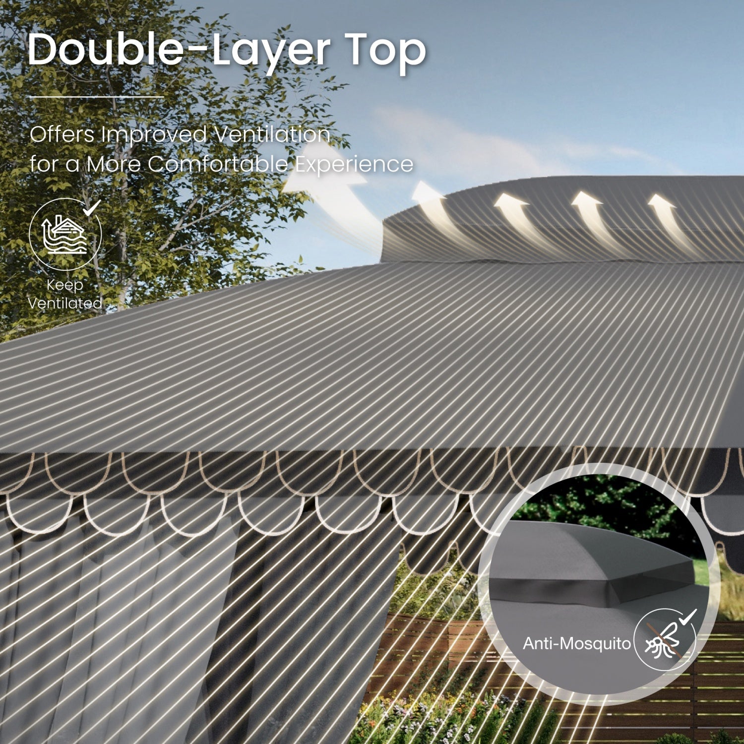 - Dual-Layer Protection: Equipped with mosquito netting and privacy curtains, this gazebo offers dual-layer protection against pesky insects and enhances your outdoor privacy.