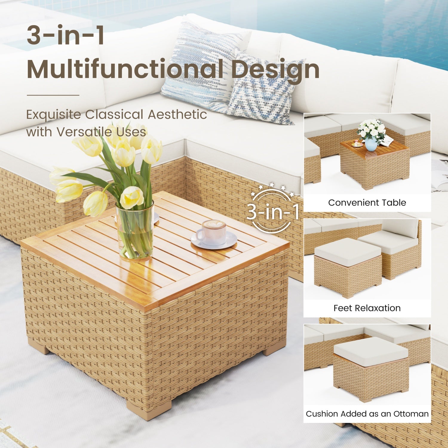 - Durable Rattan Construction: The handwoven rattan is waterproof, breathable, and UV-resistant, offering exceptional outdoor performance and easy maintenance for lasting beauty and functionality.