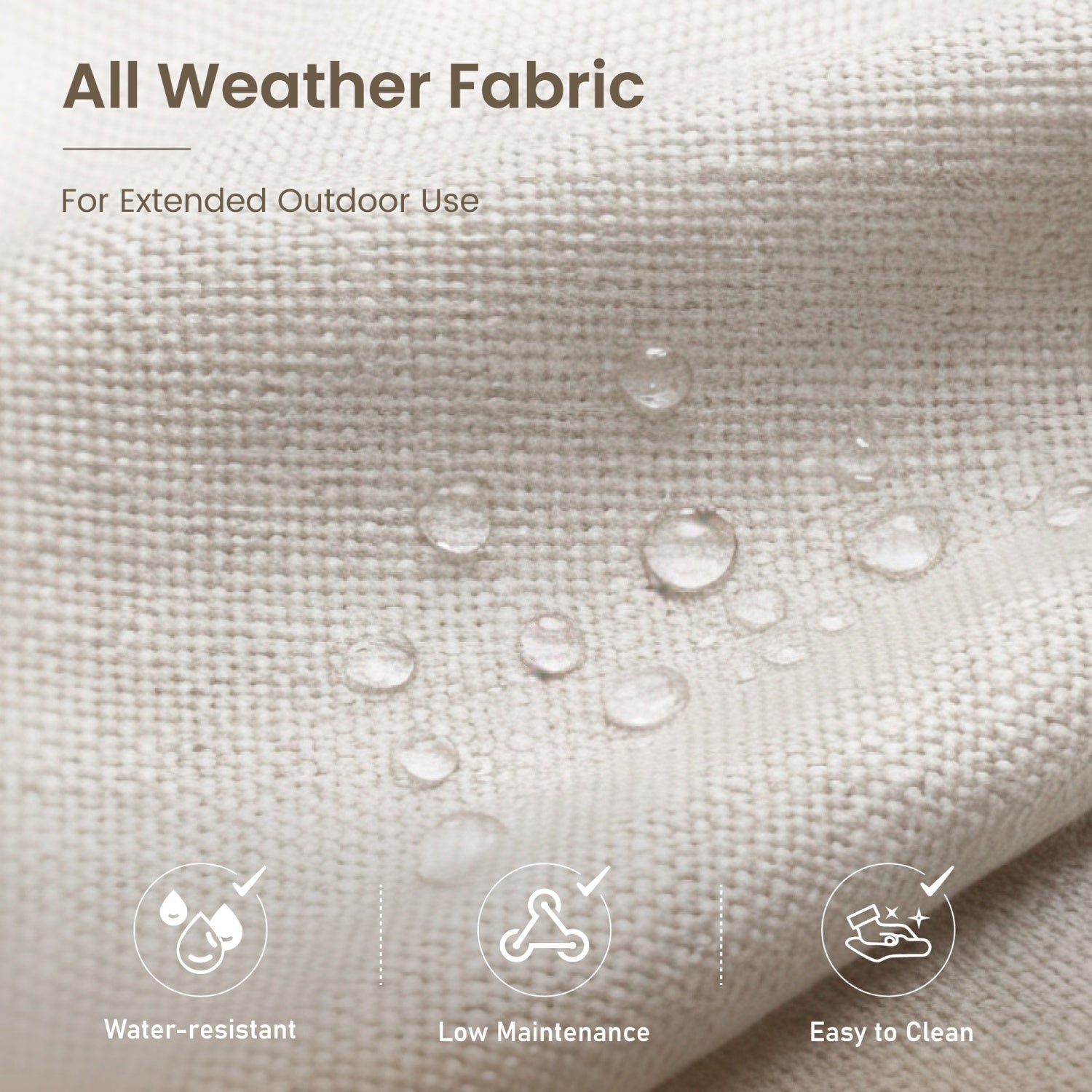 - Comfortable All-Weather Fabric: Enjoy luxurious, splash-proof fabric that requires low maintenance, providing ultimate comfort and resilience against the elements for your perfect outdoor retreat.
