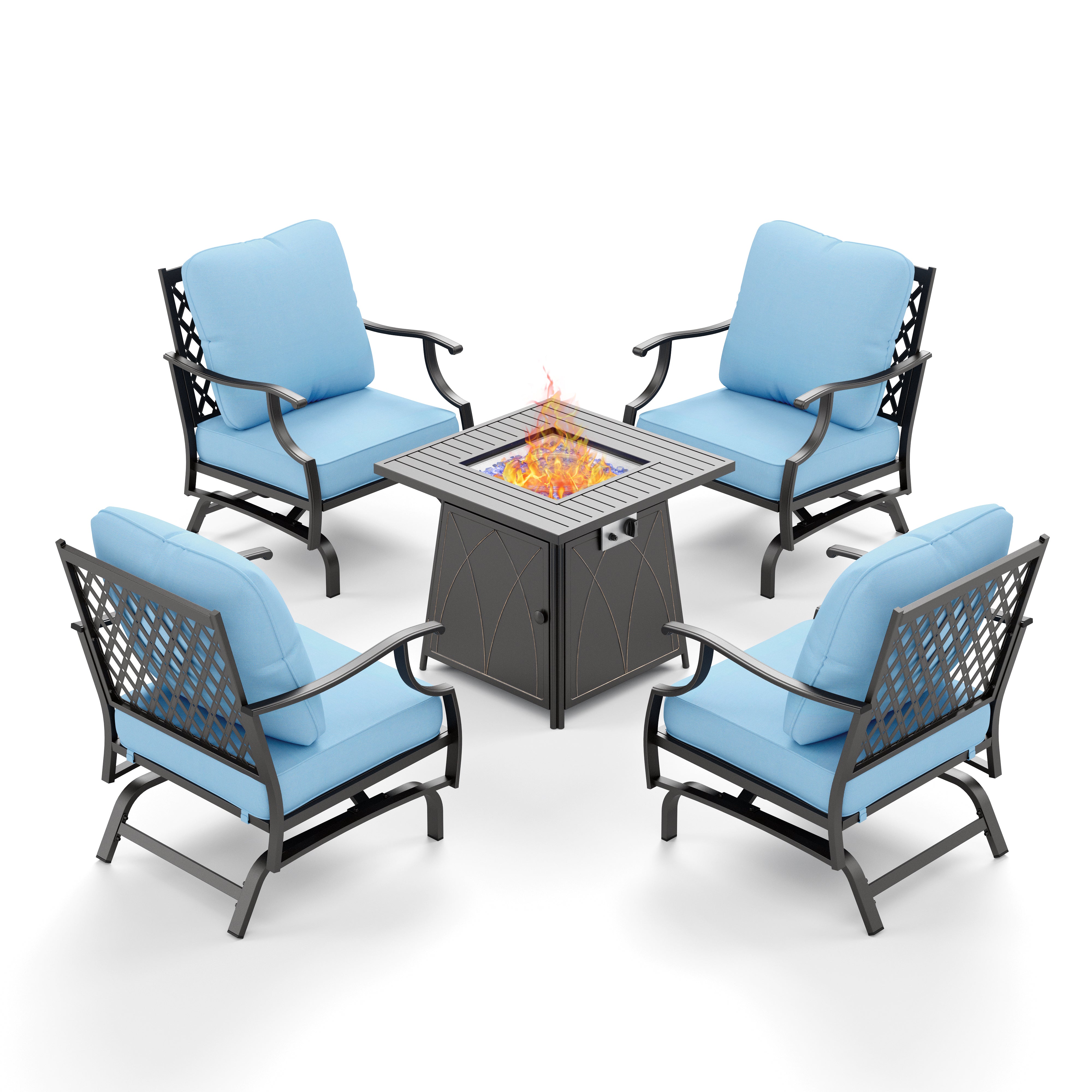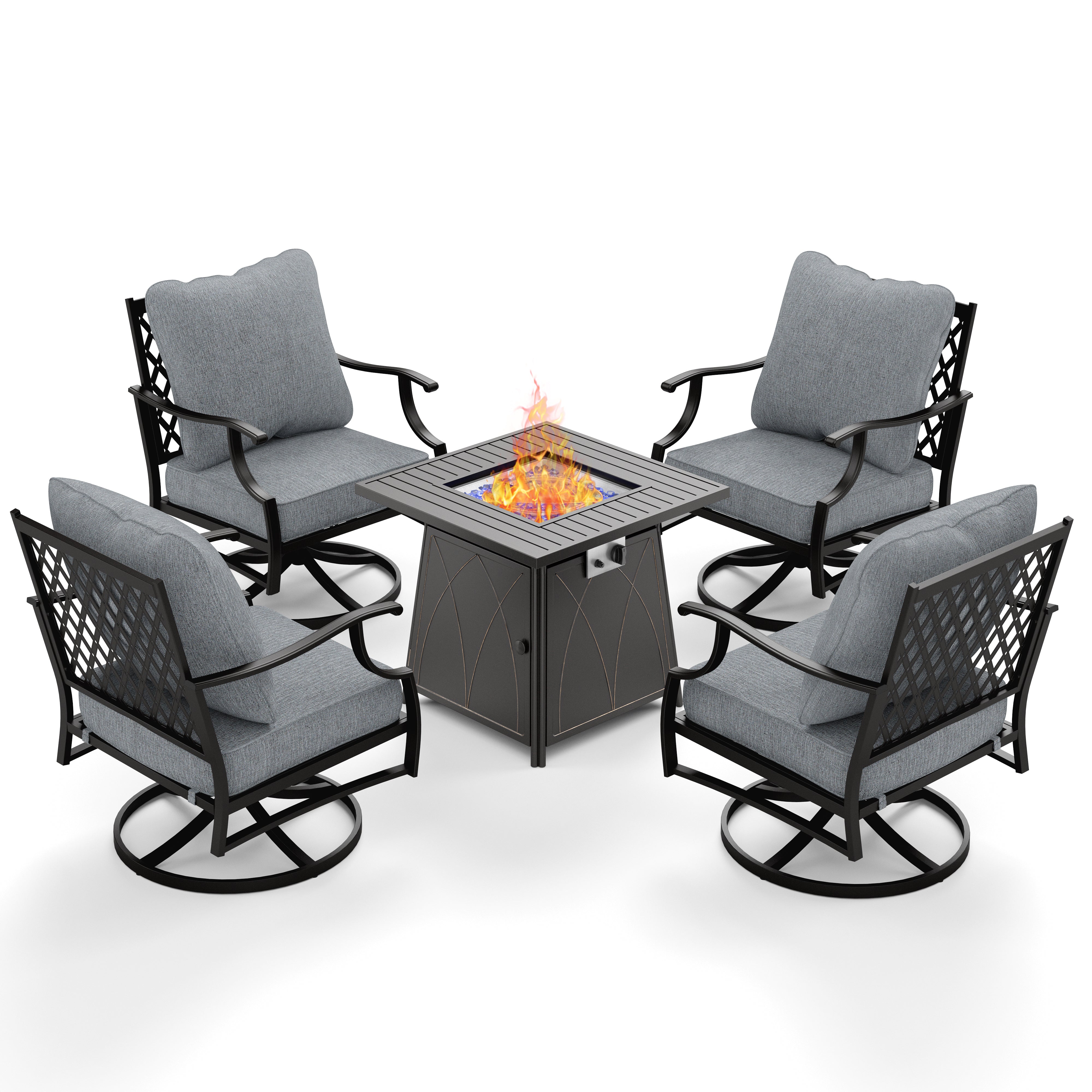 - 4-Seater Garden Metal Diamond Sofa Set with Fire Pit Table