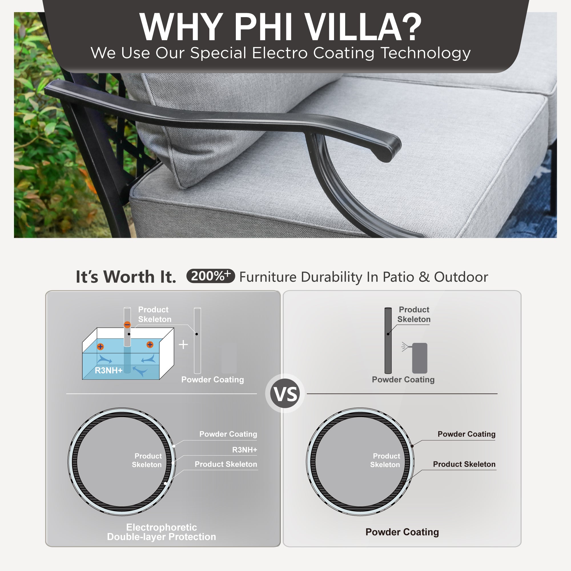 - Reliable Durability: The robust steel frame is processed with advanced e-coating technique, ensuring rust resistance and enduring durability for all weather conditions.