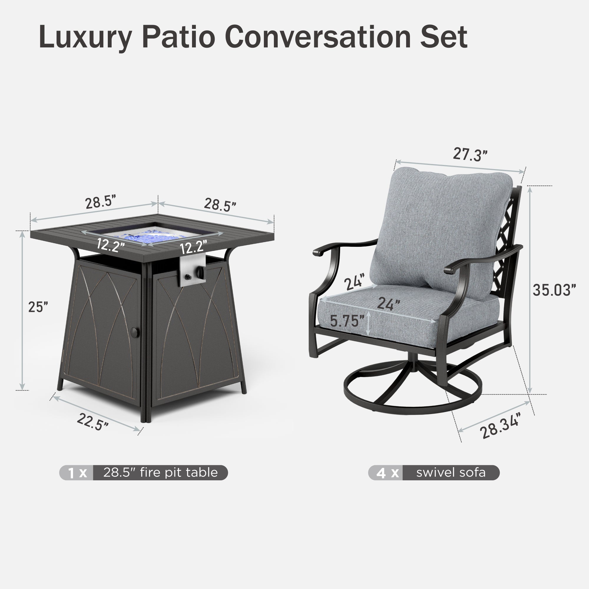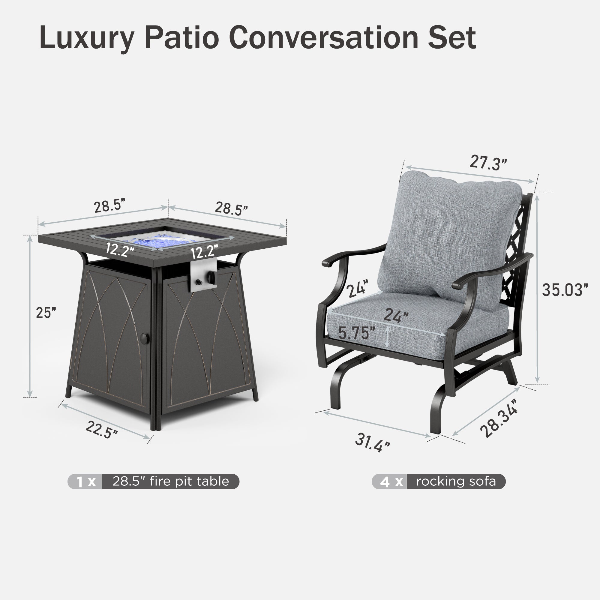 Fire Pit Table: 22.5''W x 28.5''D x 25''H