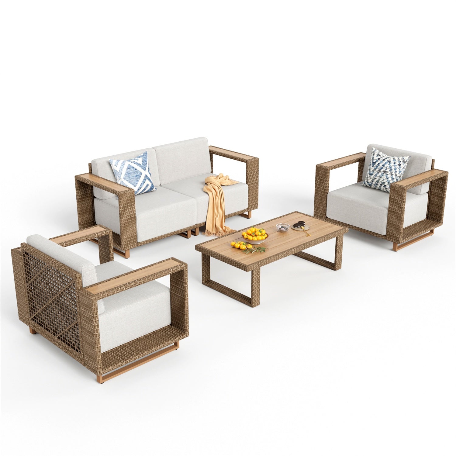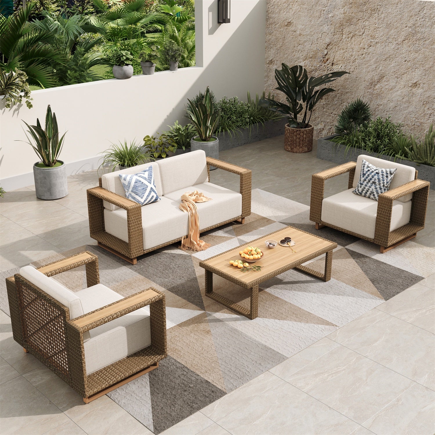 - Contemporary Comfort: Enjoy wider 5.5’’ armrests made of durable rattan and wood plastic, perfect for modern outdoor spaces.