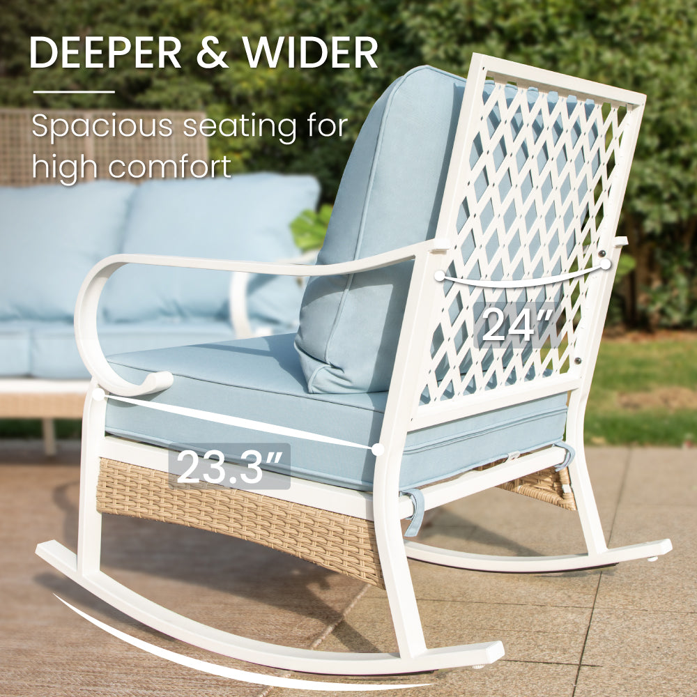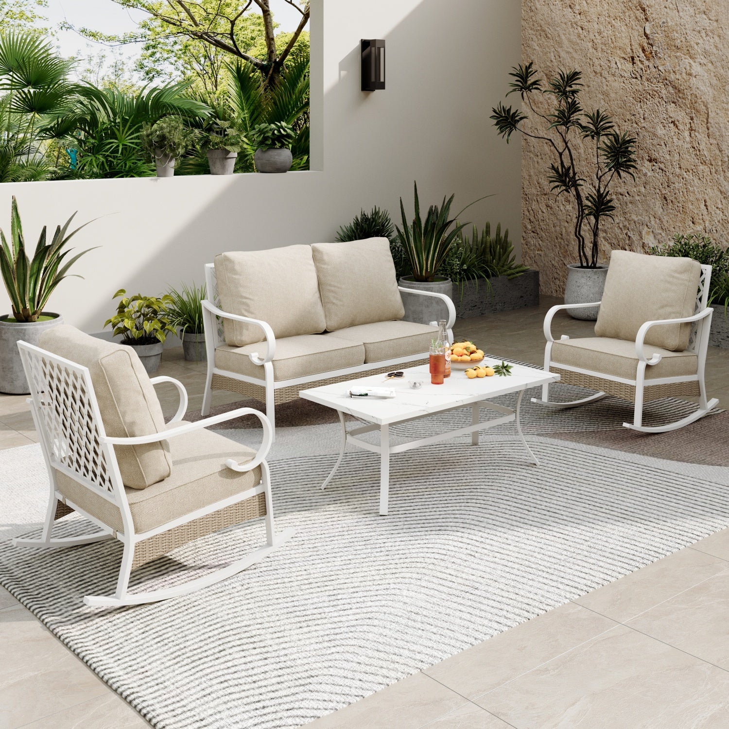 4-Seater Patio Metal All-White Sofa Set with Rattan Edge for Sale