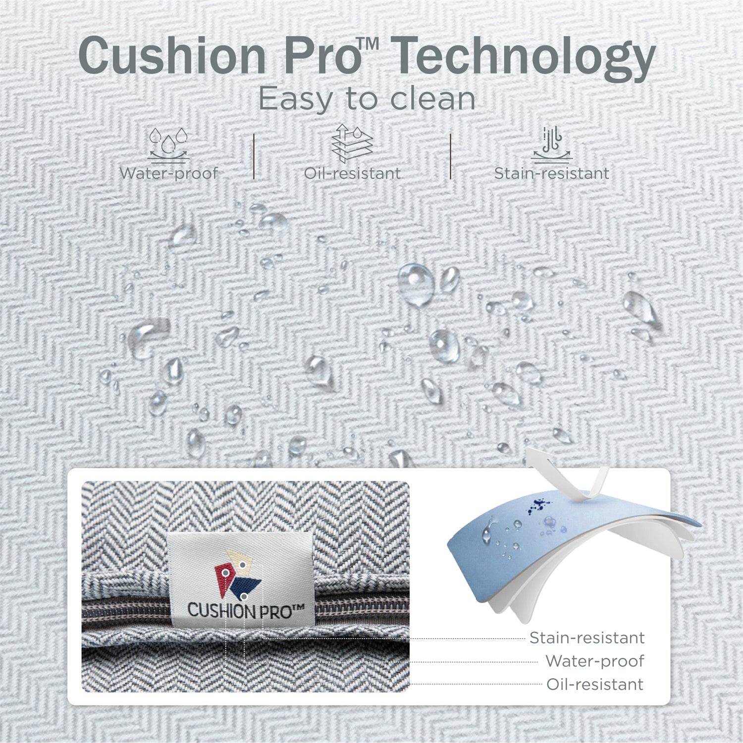 - CushionPro Fabric: Indulge in luxury with our cushions crafted from our patented fabric. They're waterproof, oil-resistant, and stain-resistant, ensuring durability and easy maintenance with a simple sponge and cleaning spray.