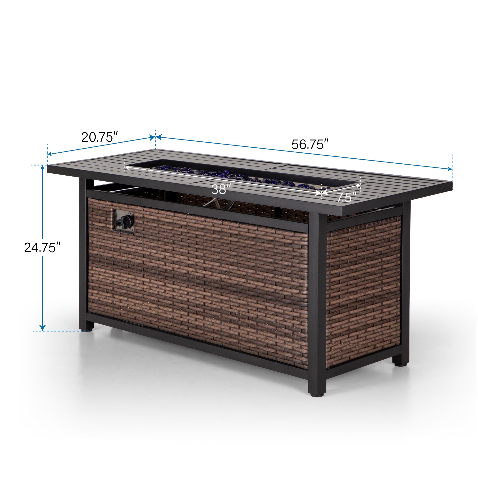 56'' 50,000 BTU Outdoor Wicker and Steel Rectangle Gas Fire Pit Table