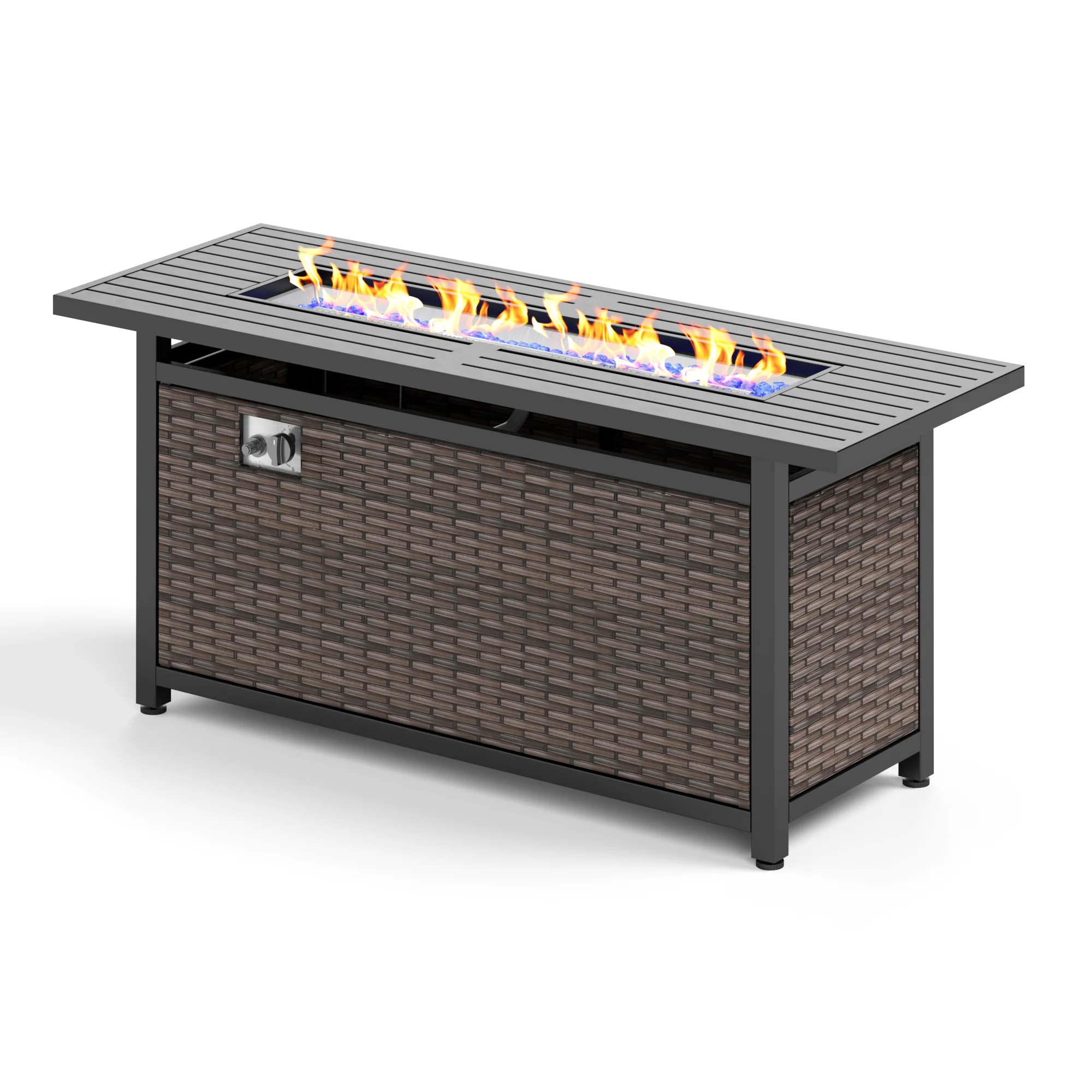 - 56'' 50,000 BTU Outdoor Wicker and Steel Rectangle Gas Fire Pit Table