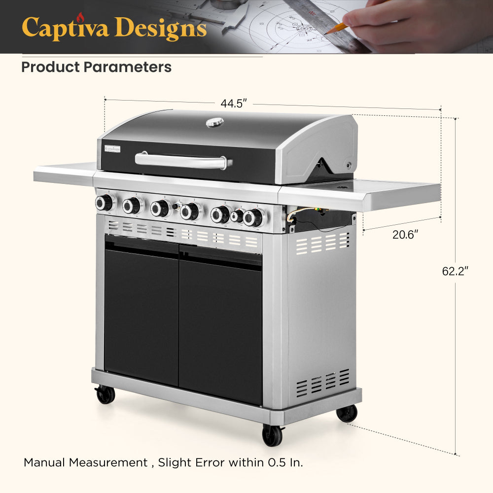 6-Burner Gas BBQ Patio Grill with Griddle and Side Burner 42,000 BTU-Captiva Designs