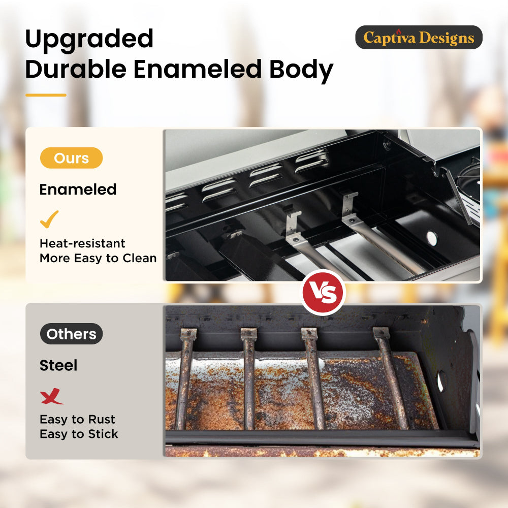- Save Enameled Burner Chamber: The burner chamber has an enameled coating that offers better high-temperature resistance than standard powder coatings and prevents the release of harmful gases during use.