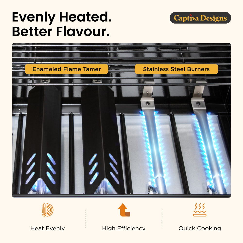 - Superior Heat Retention: The enameled cast iron griddle plate provides excellent heat retention and even cooking, ensuring perfectly seared meats and enhanced flavor in every dish.