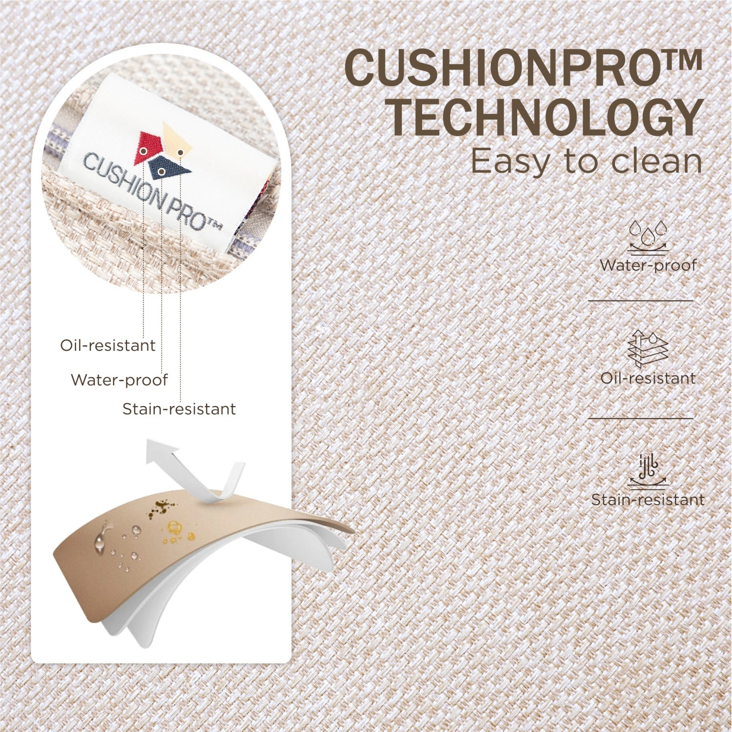 - CushionPro Fabric: Our patented fabric is waterproof, oil-resistant, and stain-resistant, making it easy to clean and ideal for long-term outdoor use.