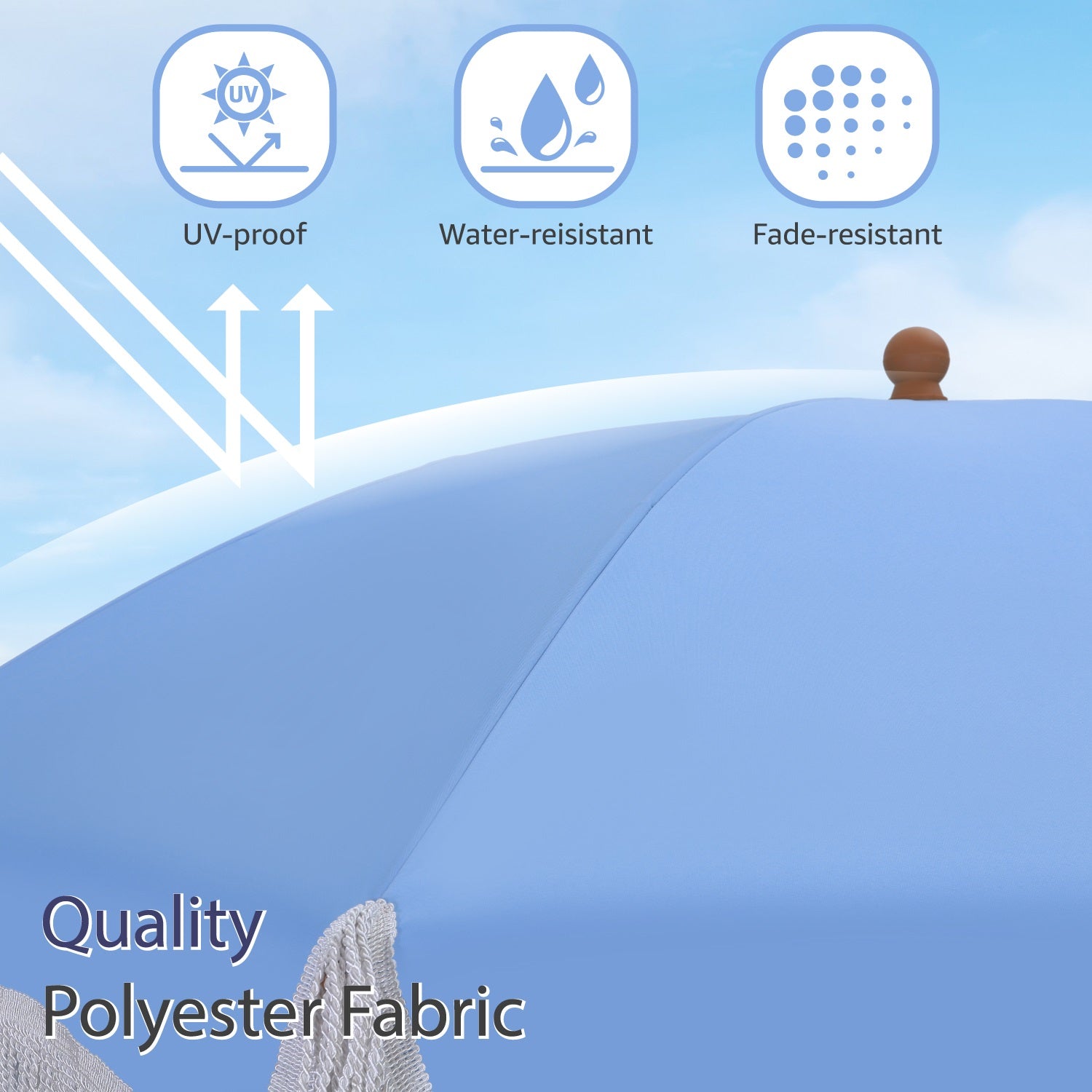 Sturdy and Wind-proof: Our Beach Umbrella come with Steel Pole and 8 fiberglass ribs, which make it more durable even when strong wind blows.