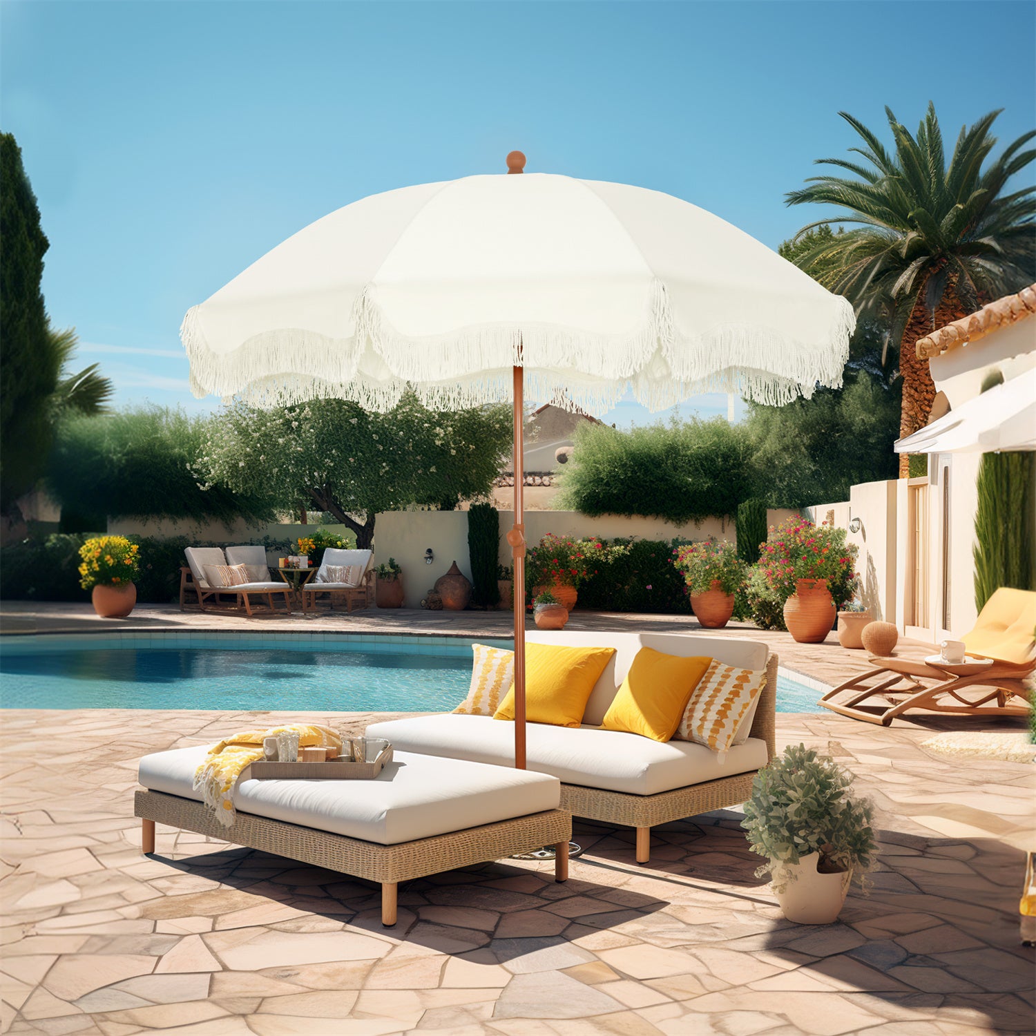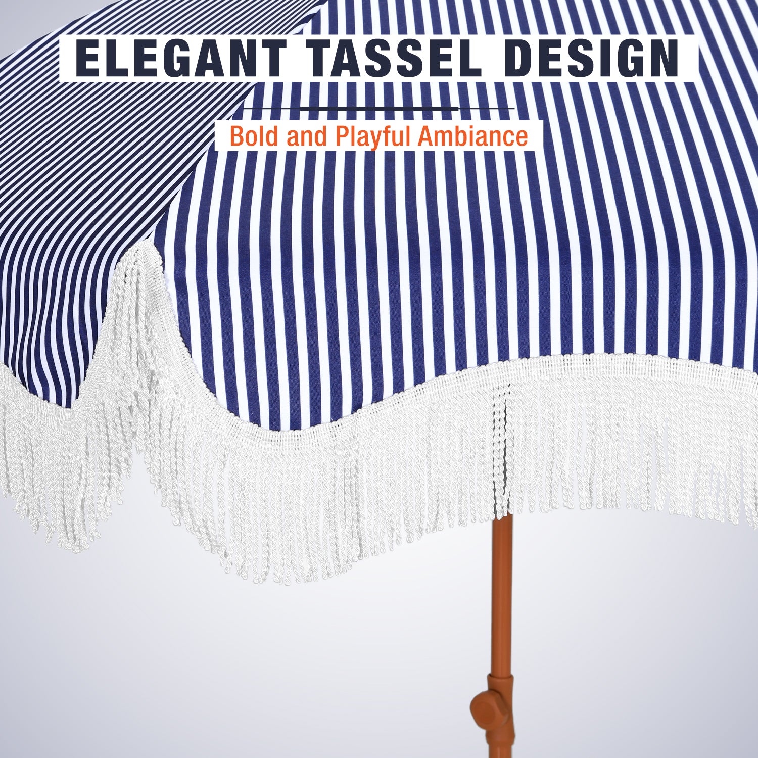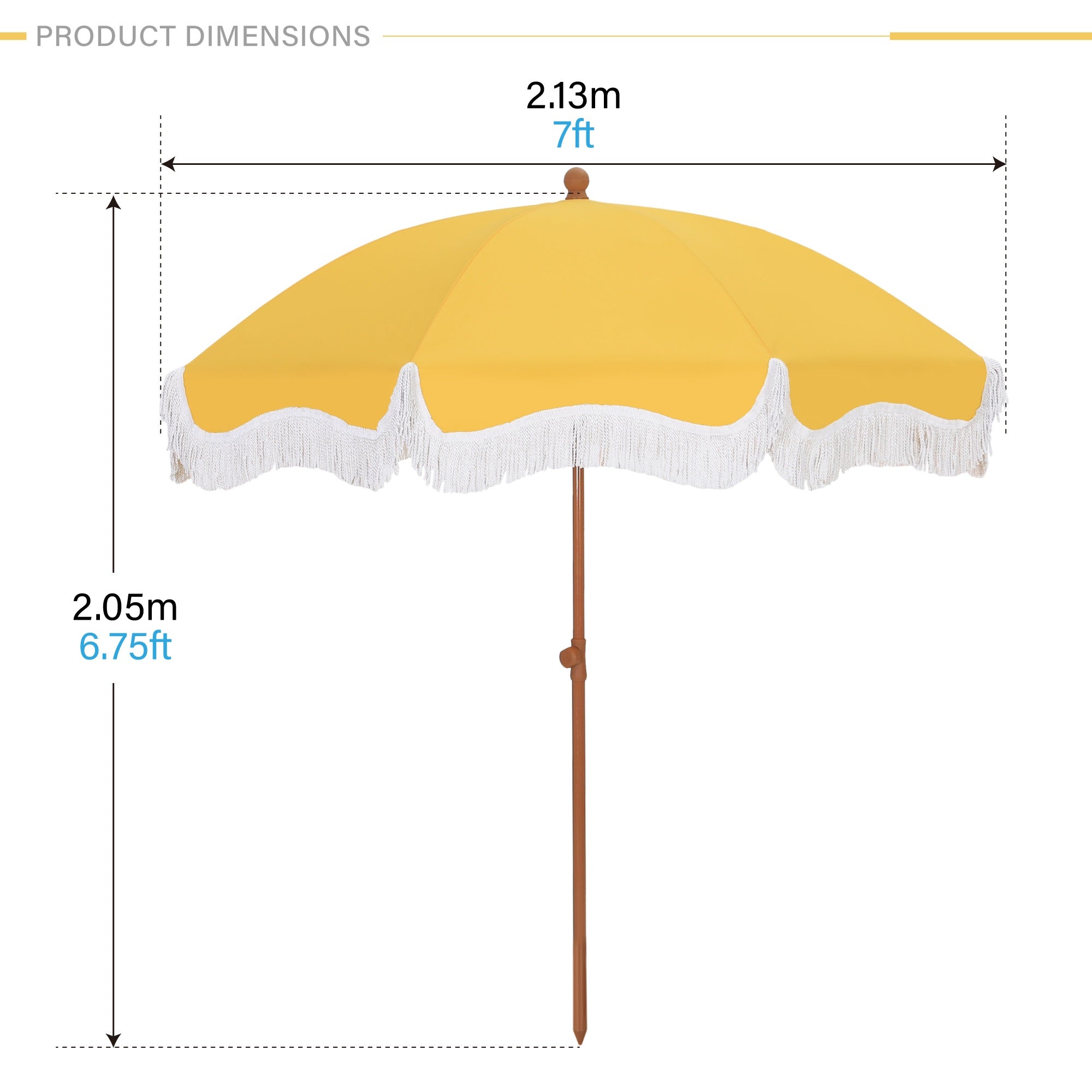 7ft Patio Beach Tassel Umbrella UPF 50+ With Carry Bag