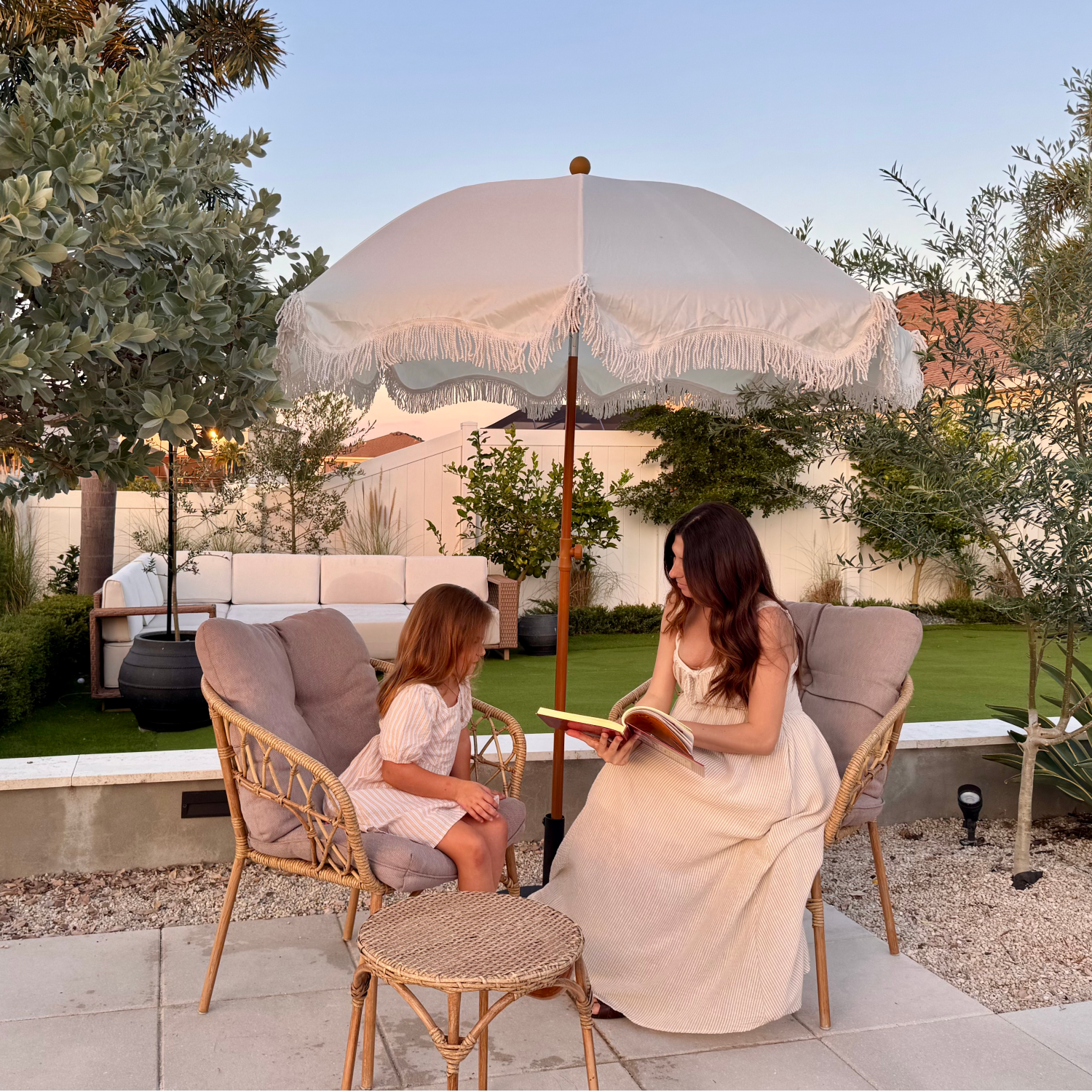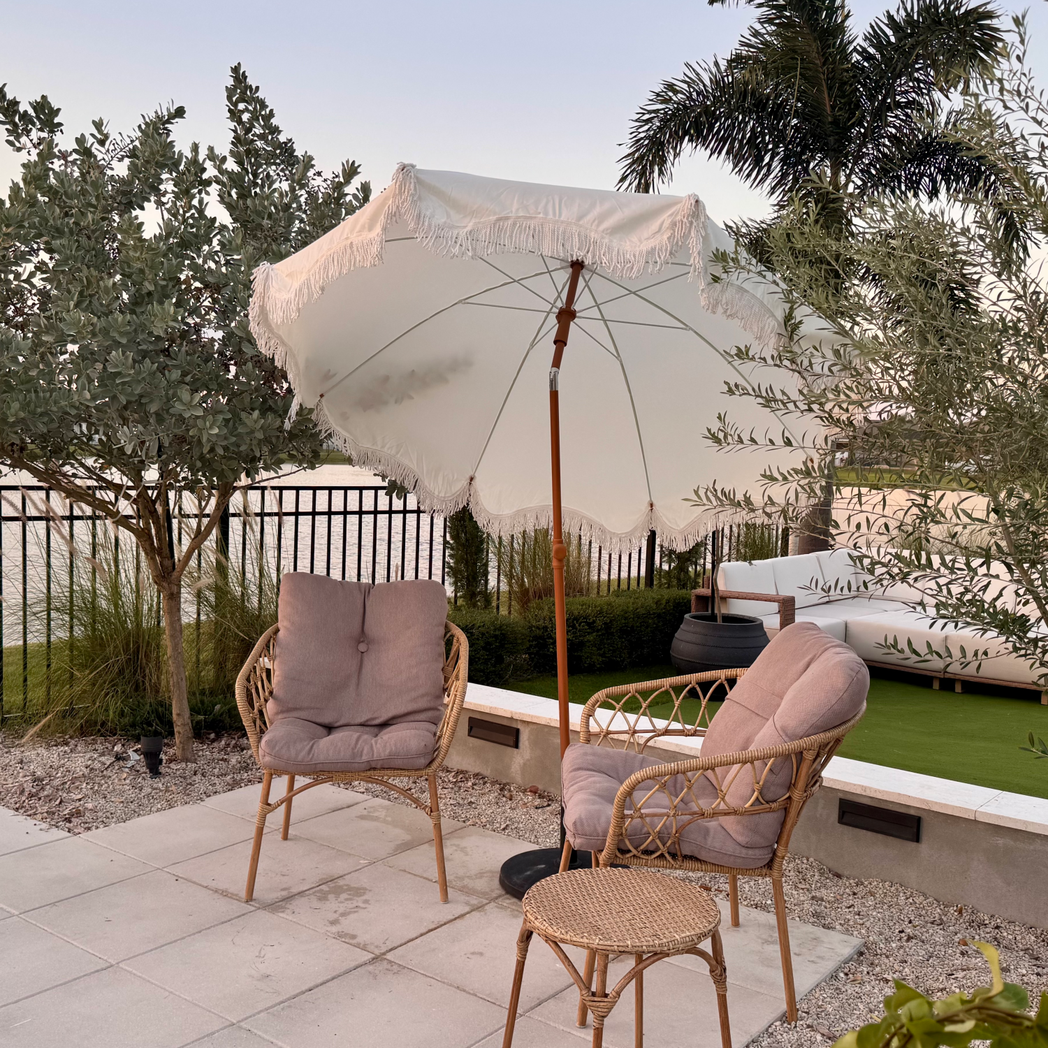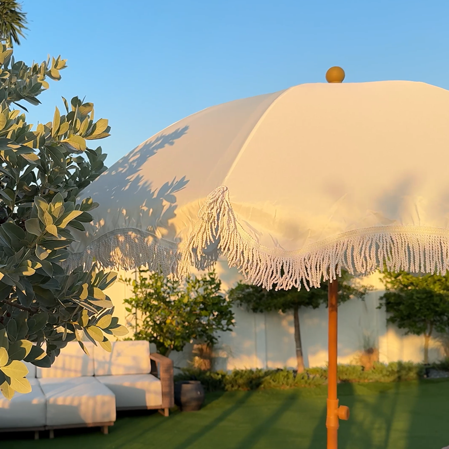 7ft Patio Beach Tassel Umbrella UPF 50+ With Carry Bag