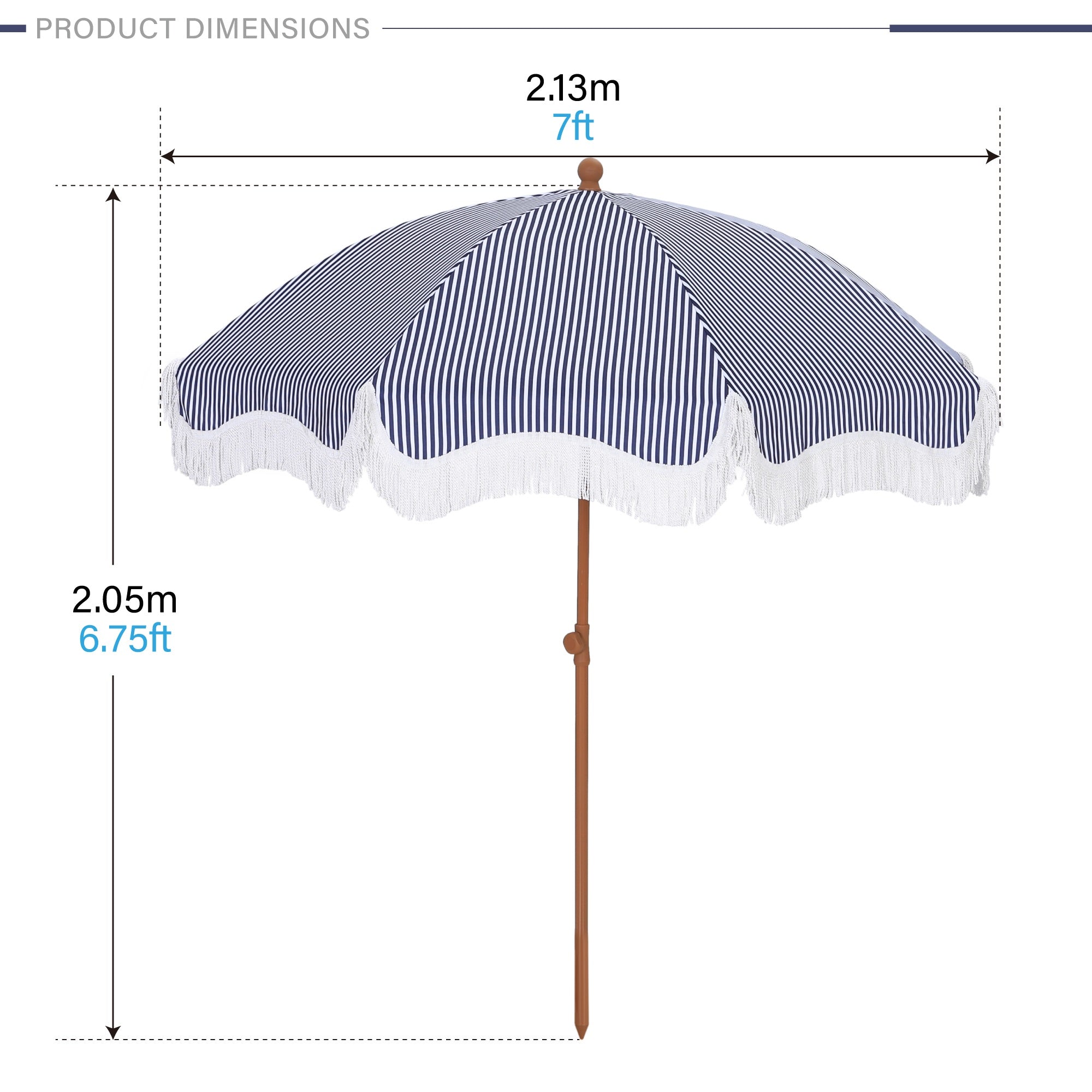 - 7ft Patio Beach Tassel Umbrella UPF 50+ With Carry Bag