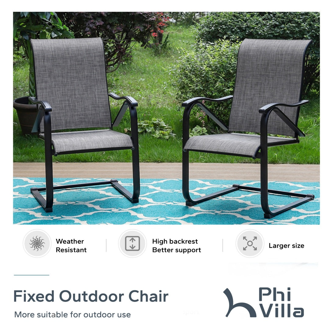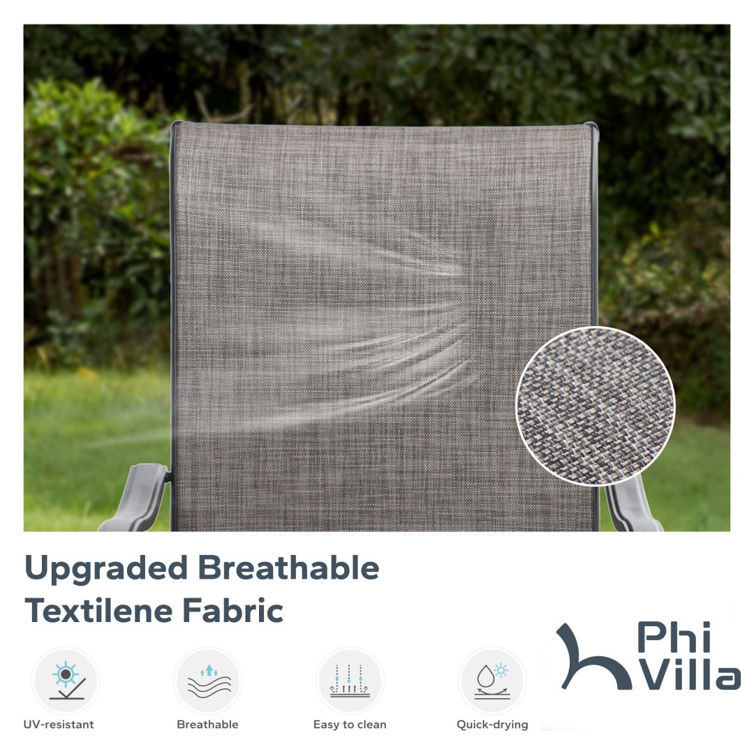 - Comfortable C-Spring Chairs: These Textilene chairs are designed for outdoor use. They feature breathable, quick-drying fabric and a high-quality metal frame. The gentle 15° rocking motion adds extra comfort to your patio, porch, or garden.