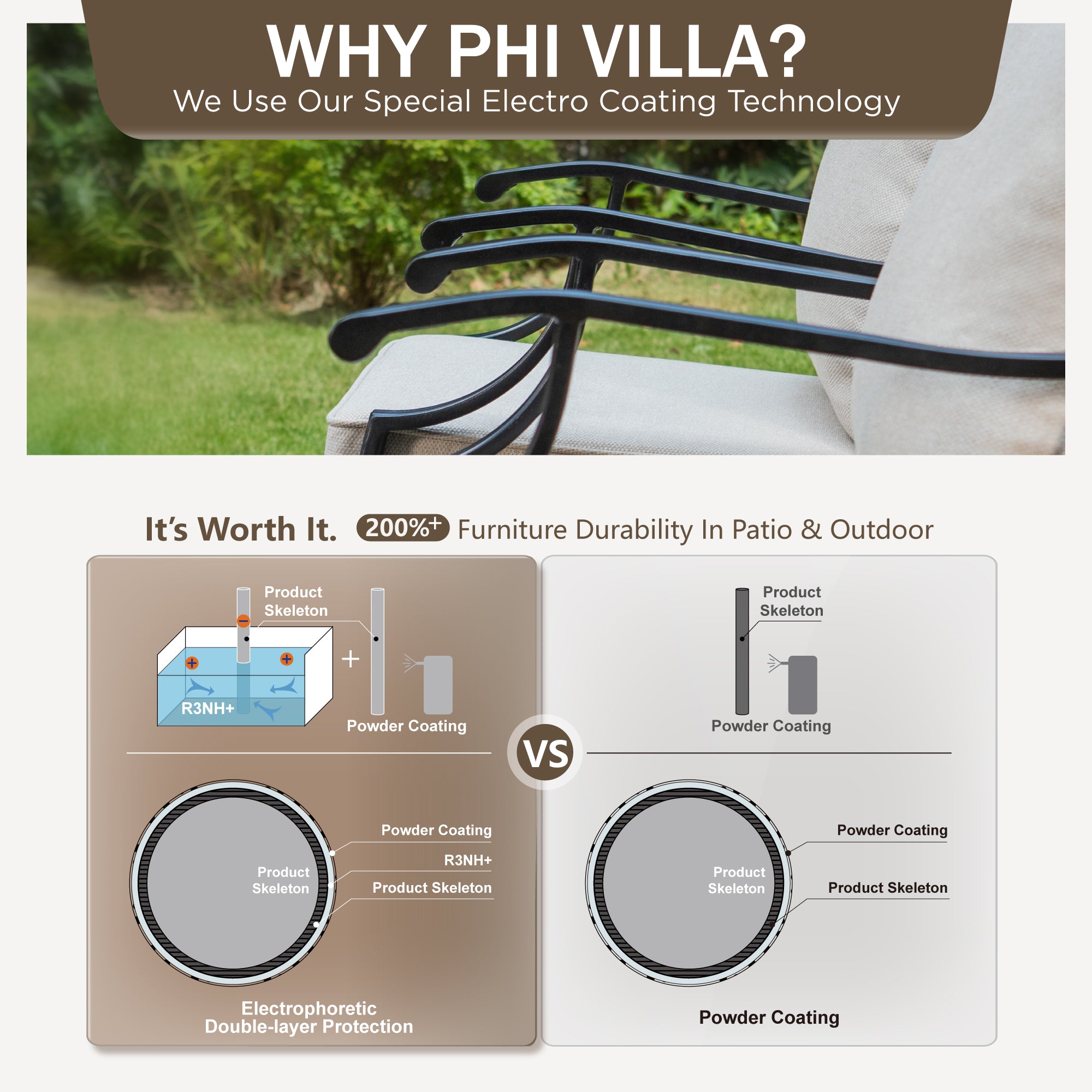 - Reliable Durability: The robust steel frame is processed with advanced e-coating technique, ensuring rust resistance and enduring durability for all weather conditions.
