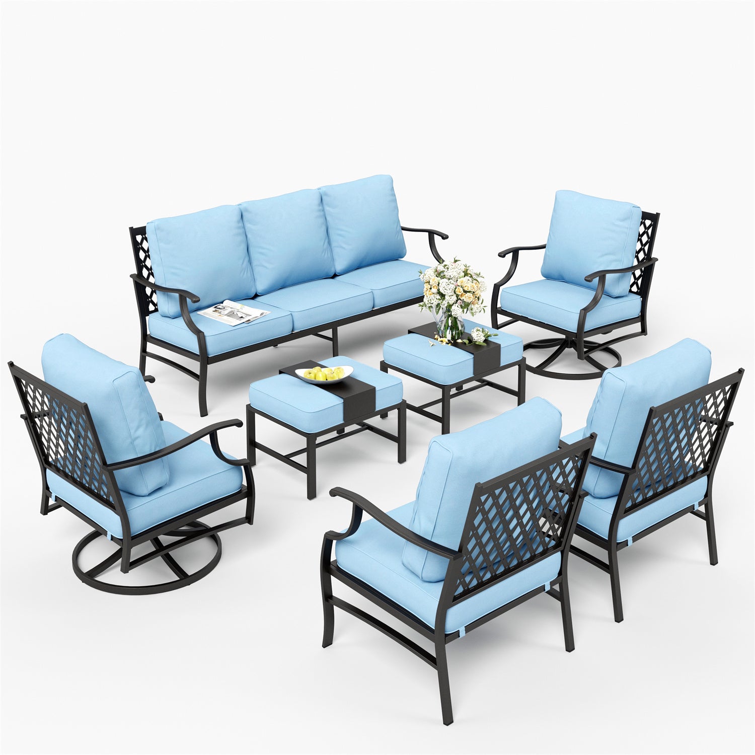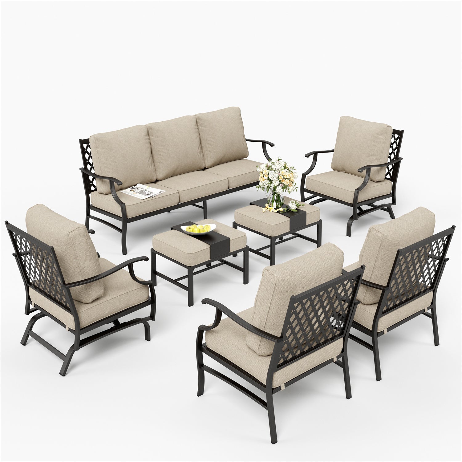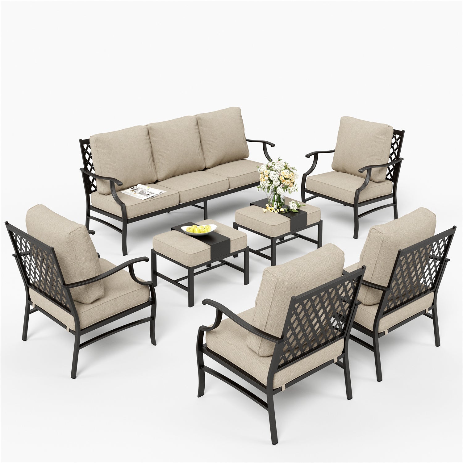 7-Seater Patio Metal Wave Sofa with Ottomans