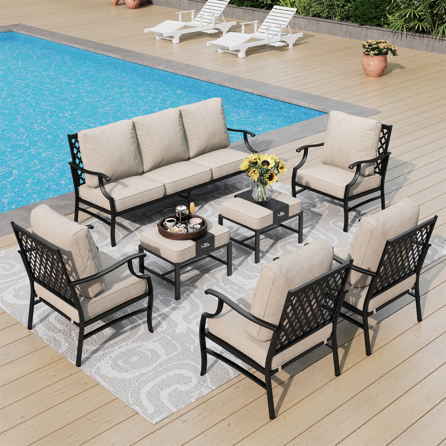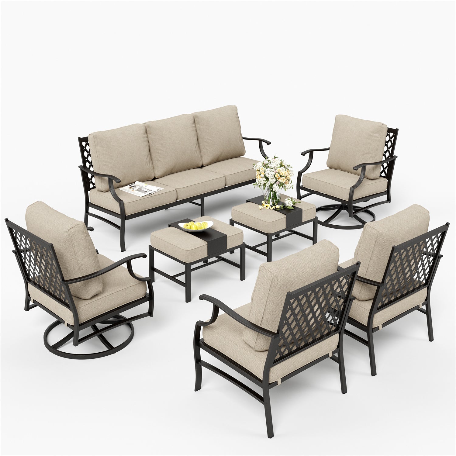 Modern 7-Piece Patio Dining Set with Upgraded Padded Swivel Chairs for Backyard PHI VILLA