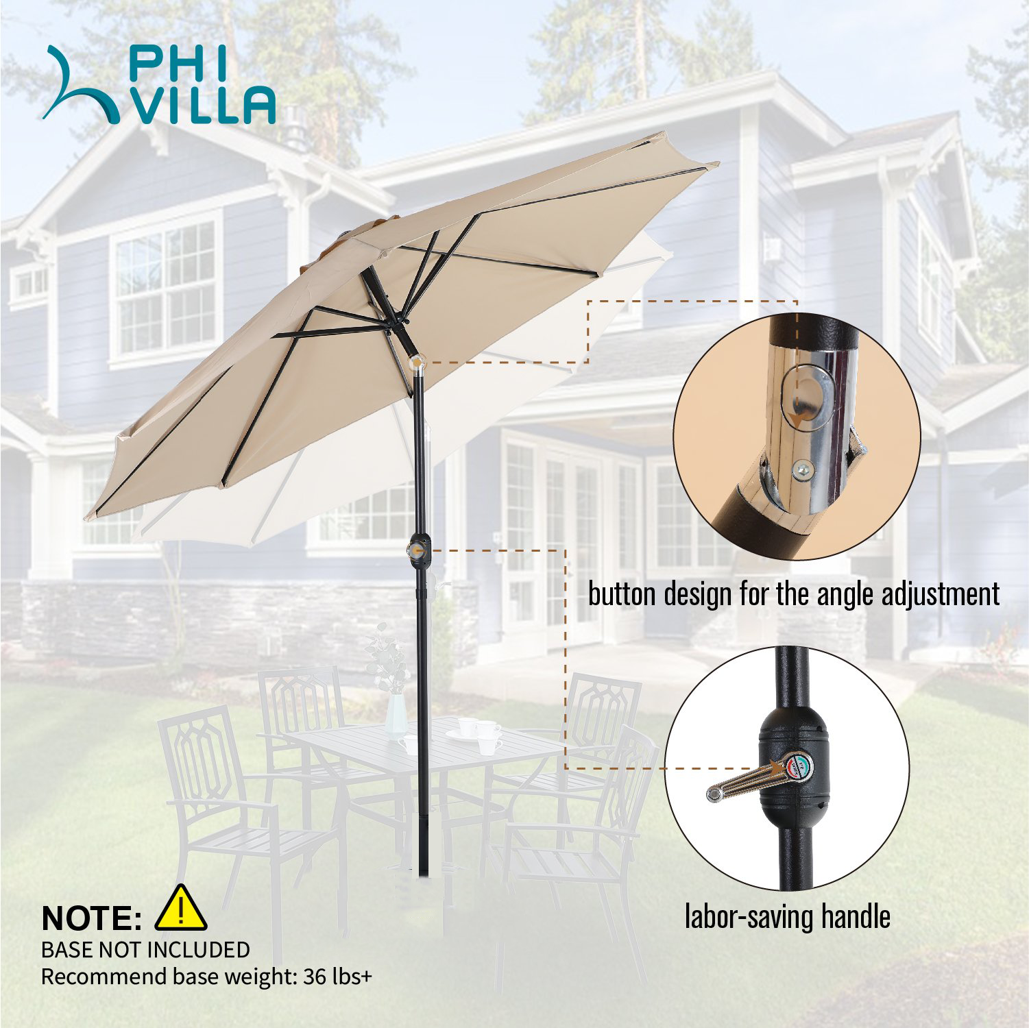 - 9ft Manual-tilted Outdoor Umbrella with Crank Handle