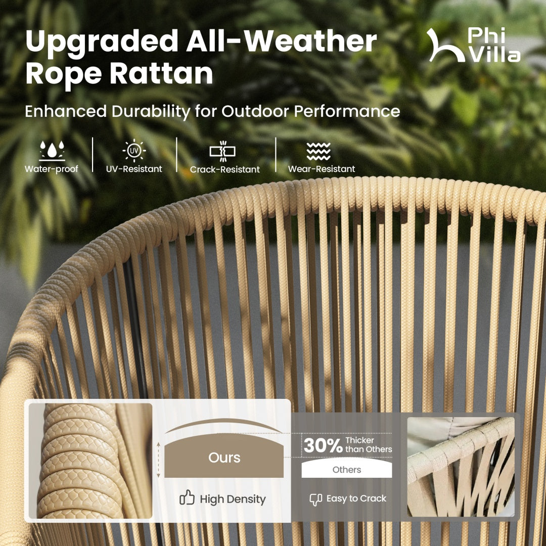 - Durable Rattan Construction: Made with 5mm UV-resistant PE rattan, featuring strong flexibility and a tightly woven design for enhanced durability and visual appeal.