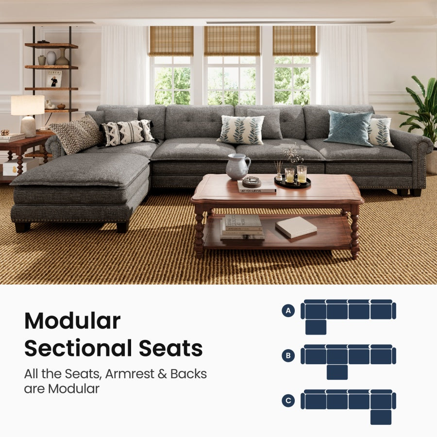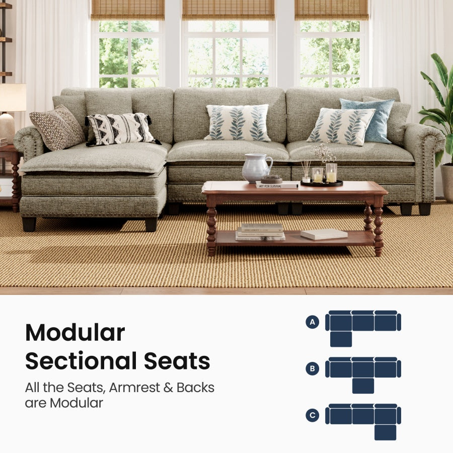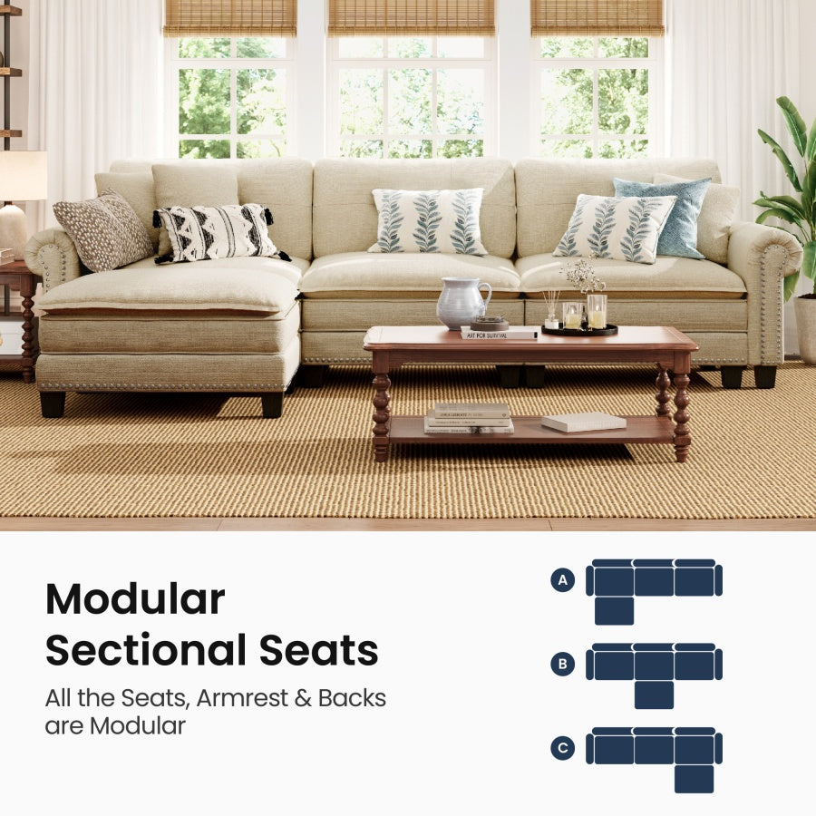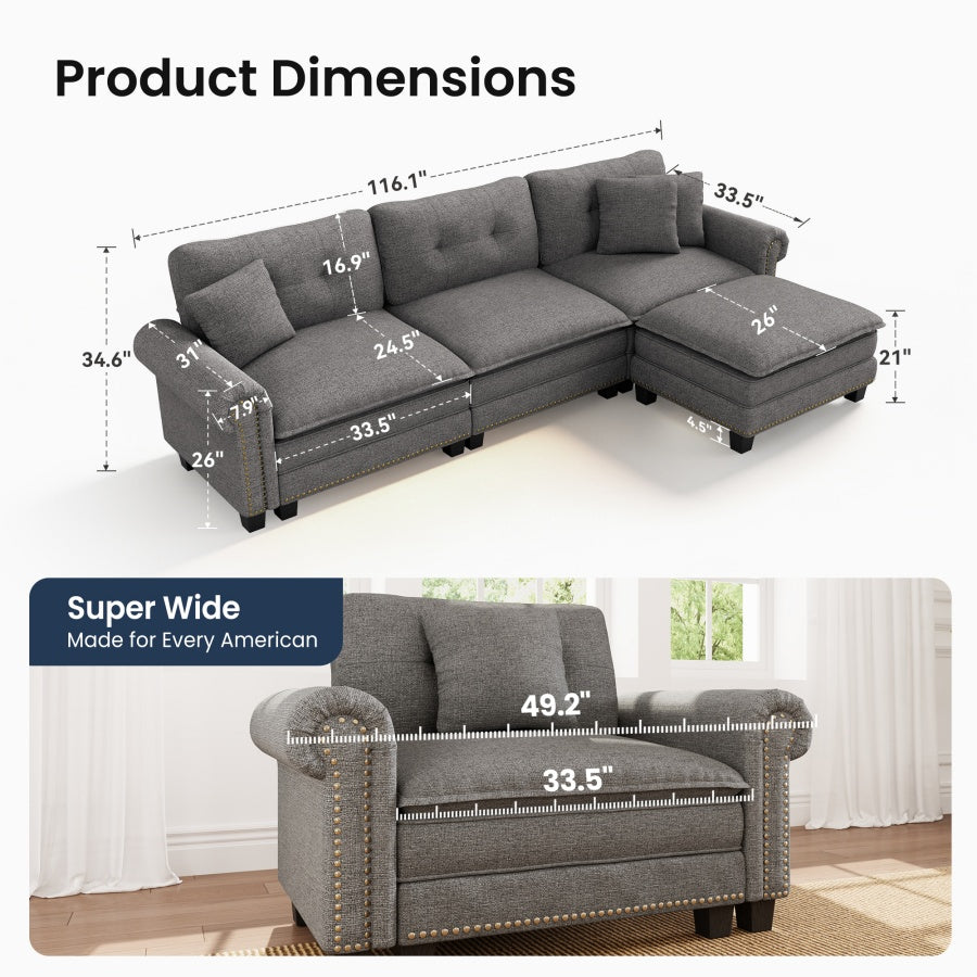 Charleston Linen-Look L-Shaped Living Room Couch with Ottoman