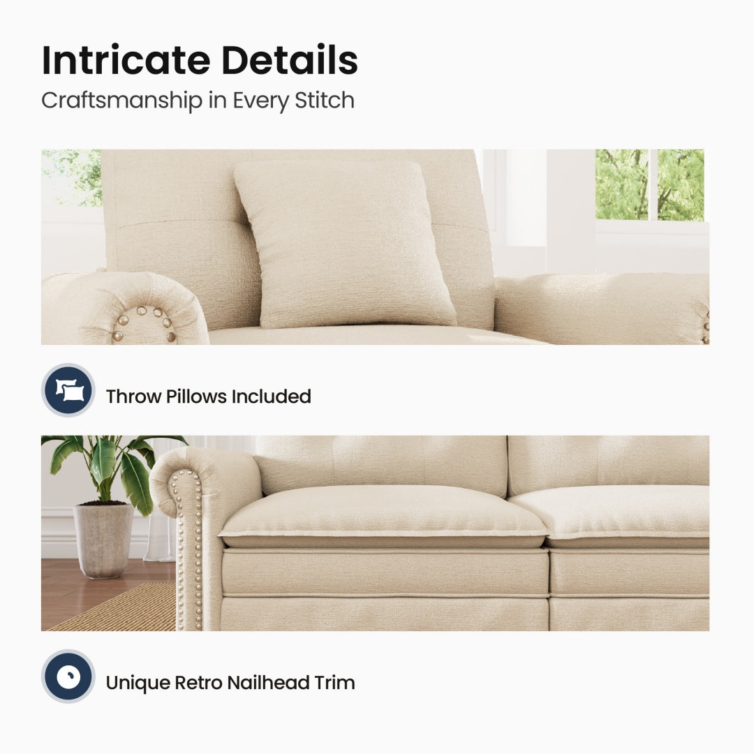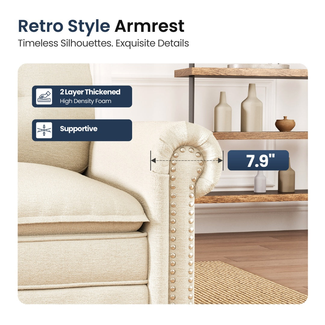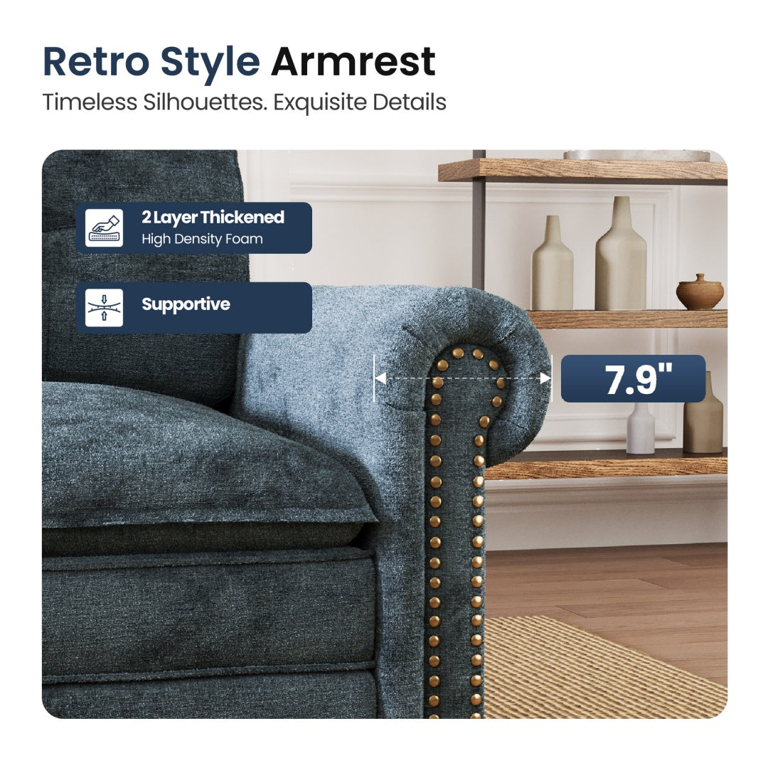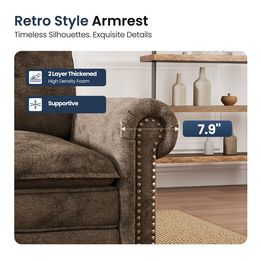 Artisan Details: Retro-style armrests and elegant vintage-inspired nailhead trim.