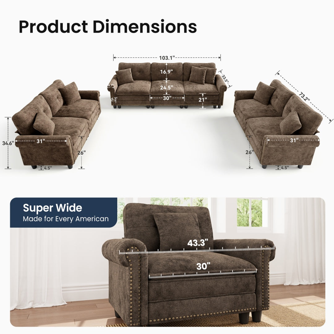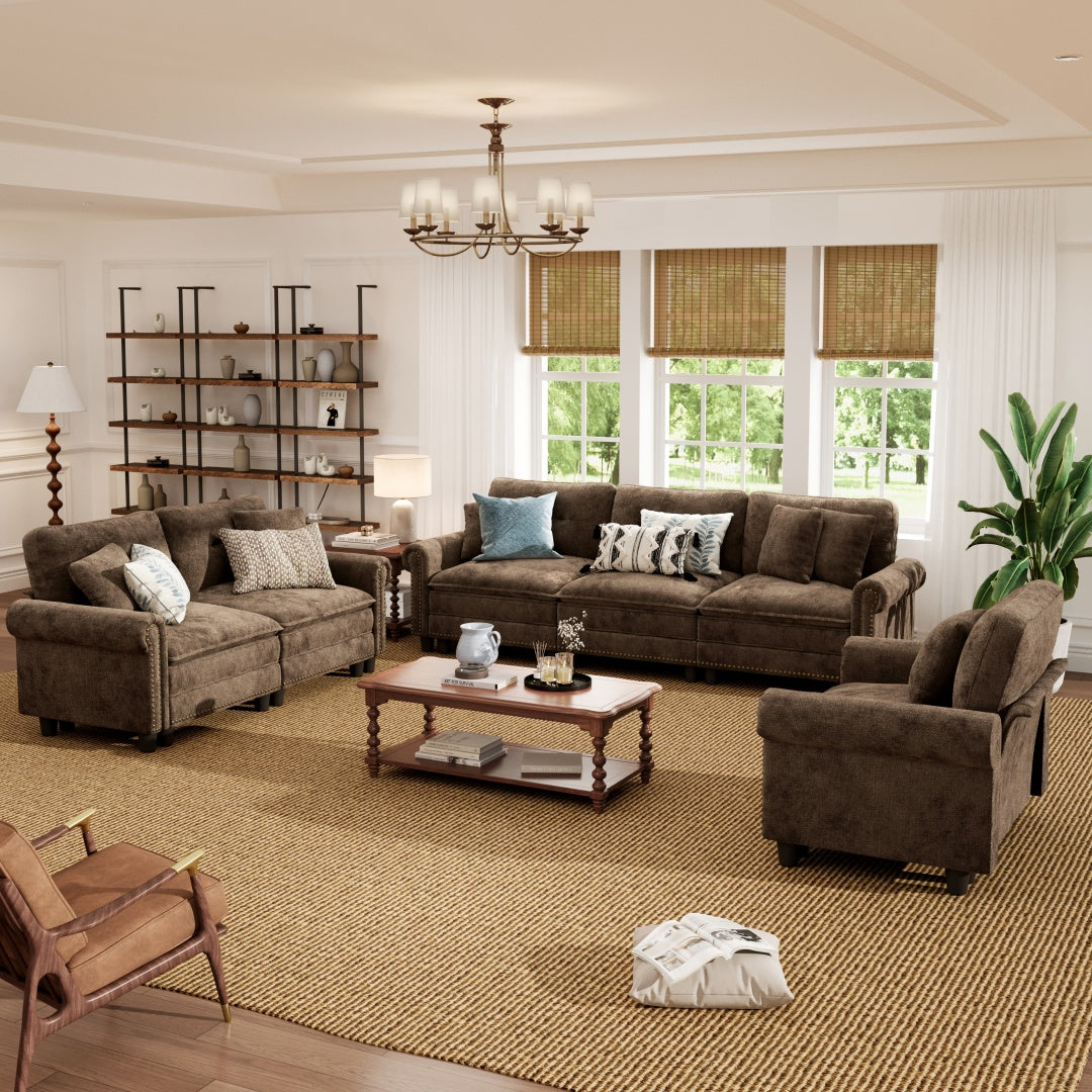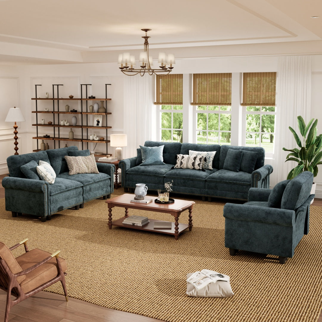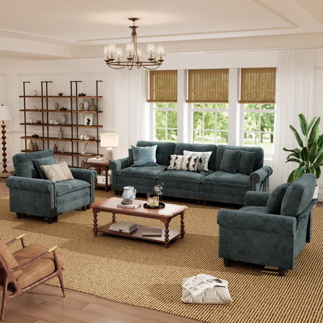 Charleston Velvet-Chenille Living Room Couch Large Set
