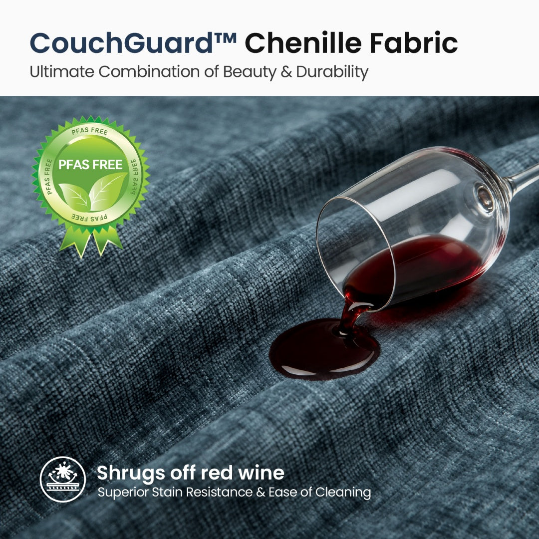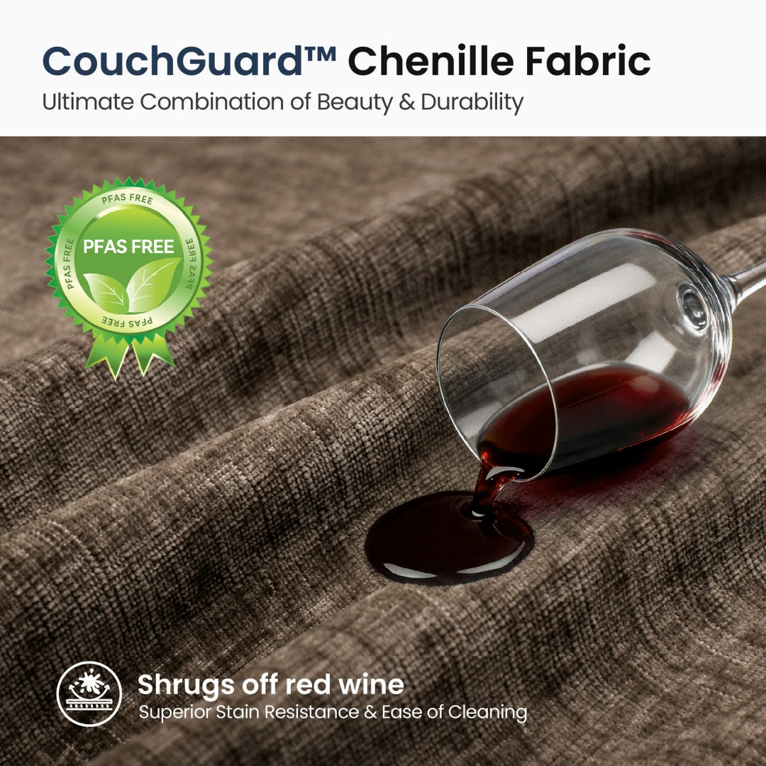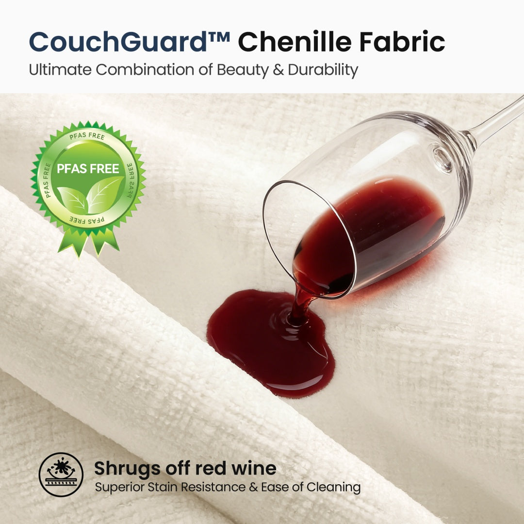 Supreme Fabric: Plush, stain-resistant CouchGuard™ Chenille for worry-free luxury.