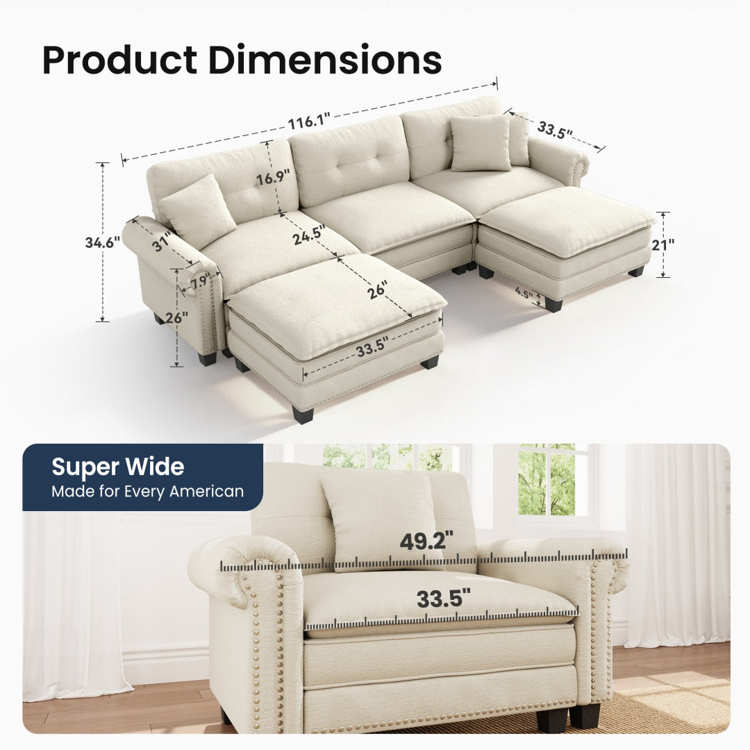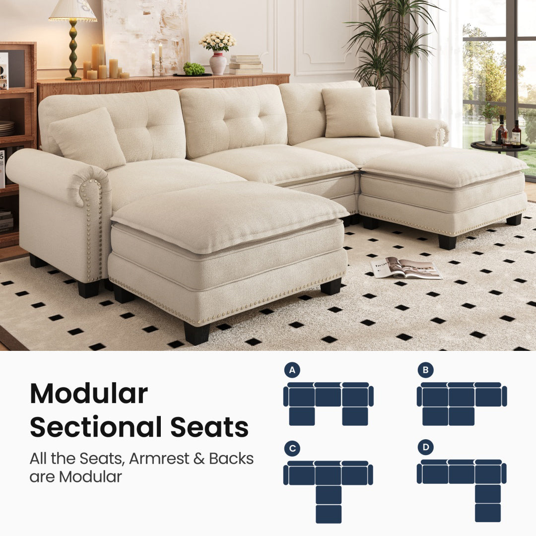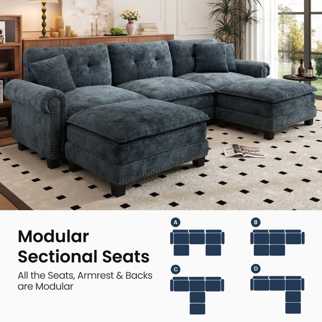 Charleston Velvet-Chenille U-Shaped Living Room Couch with Ottoman