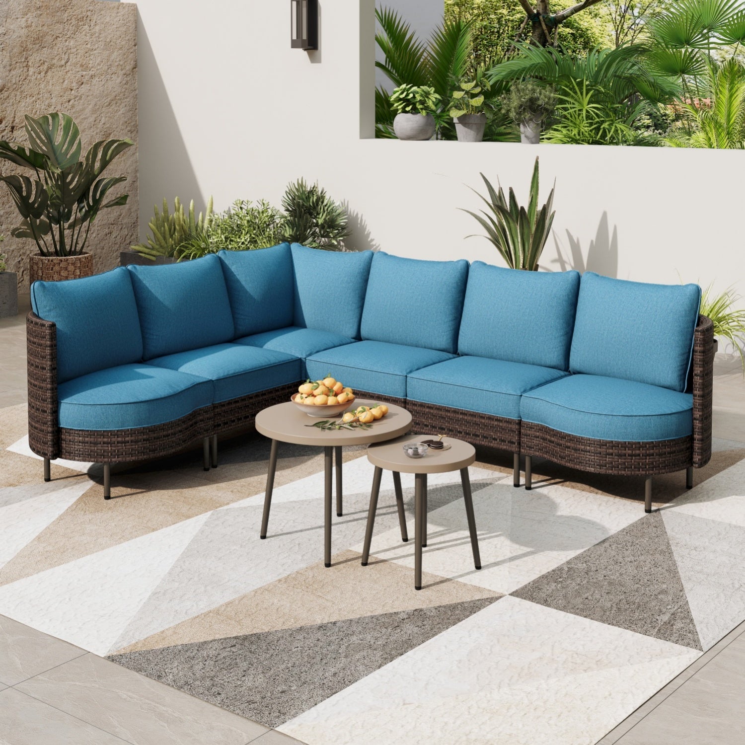 6 Seater Outdoor Couch Modern L-Shaped Sectional Sofa Set