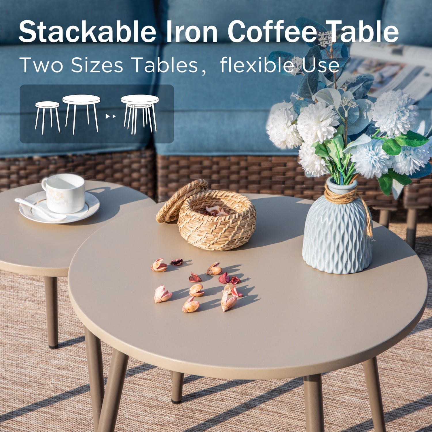 7-Seater Patio Metal Wave Sofa with Ottomans